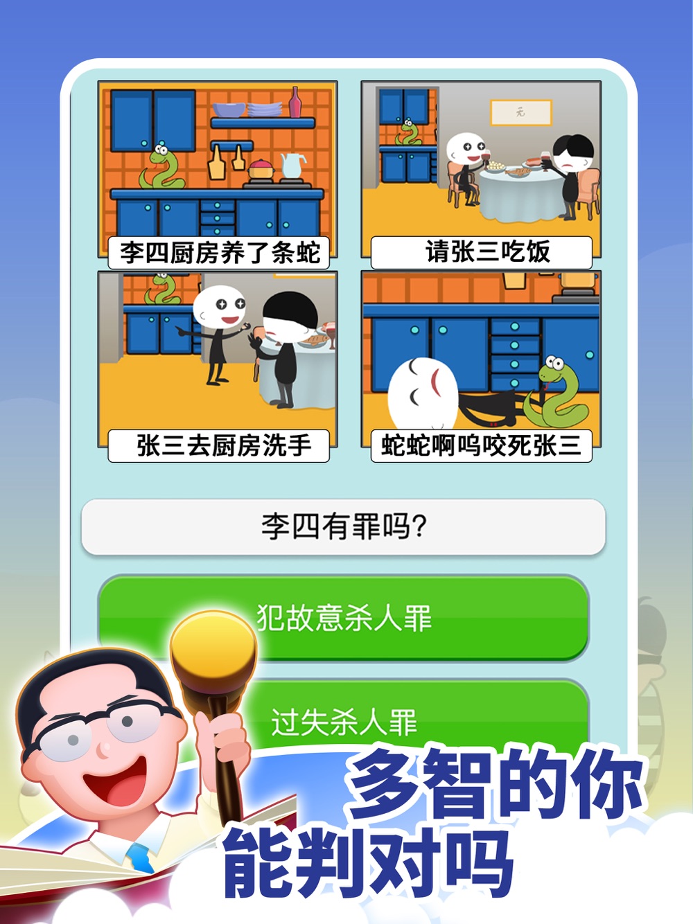玩家扮演是一名学艺不精的律师,经常要向老师请教问题,来审办各类案件。本游戏以趣味对话,简单问答形式,将法律知识普及给玩家,让玩家能够一边轻松玩游戏,一边掌握最新最全的法律法规。