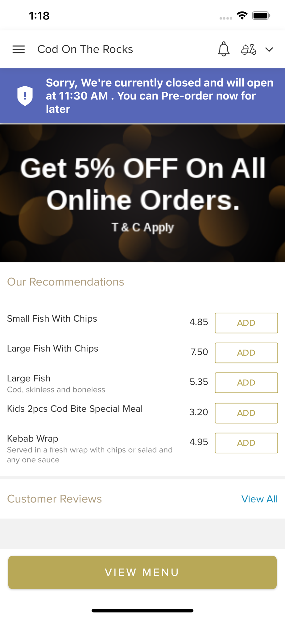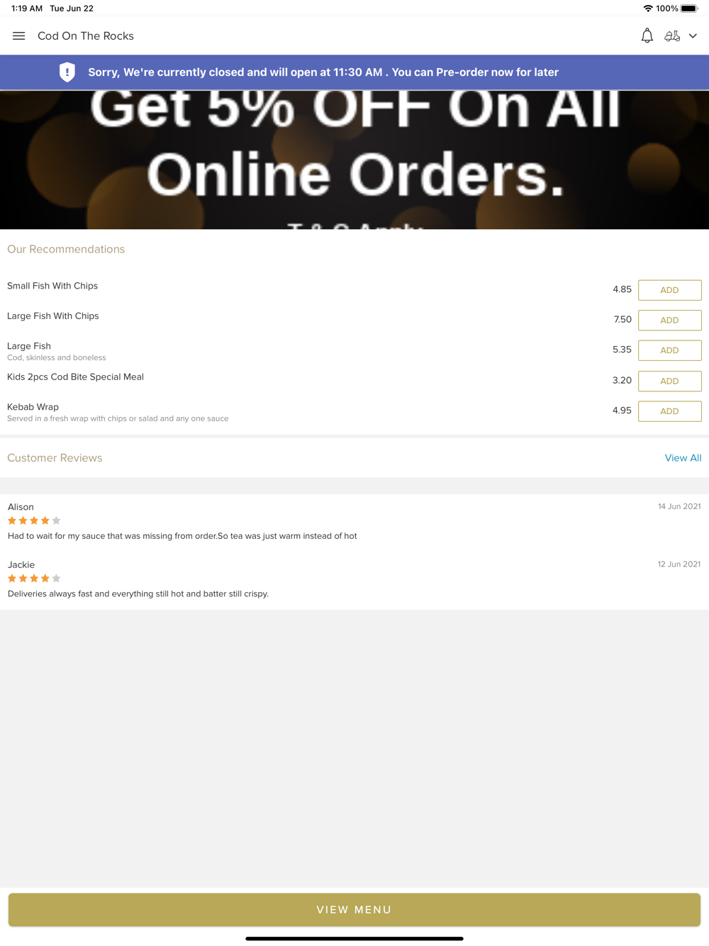Here At Cod On The Rocks We Are Constantly Striving To Improve Our Service And Quality In Order To Give Our Customers The Very Best Experience. As A Result, We Are Finally Proud To Unveil And Introduce Our Latest Improvement,Our New Online Ordering app! You Can Now Relax At Home And Order Your Favourite, Freshly Prepared Meals From Cod On The Rocks, Online. You Can Even Pay Online!
