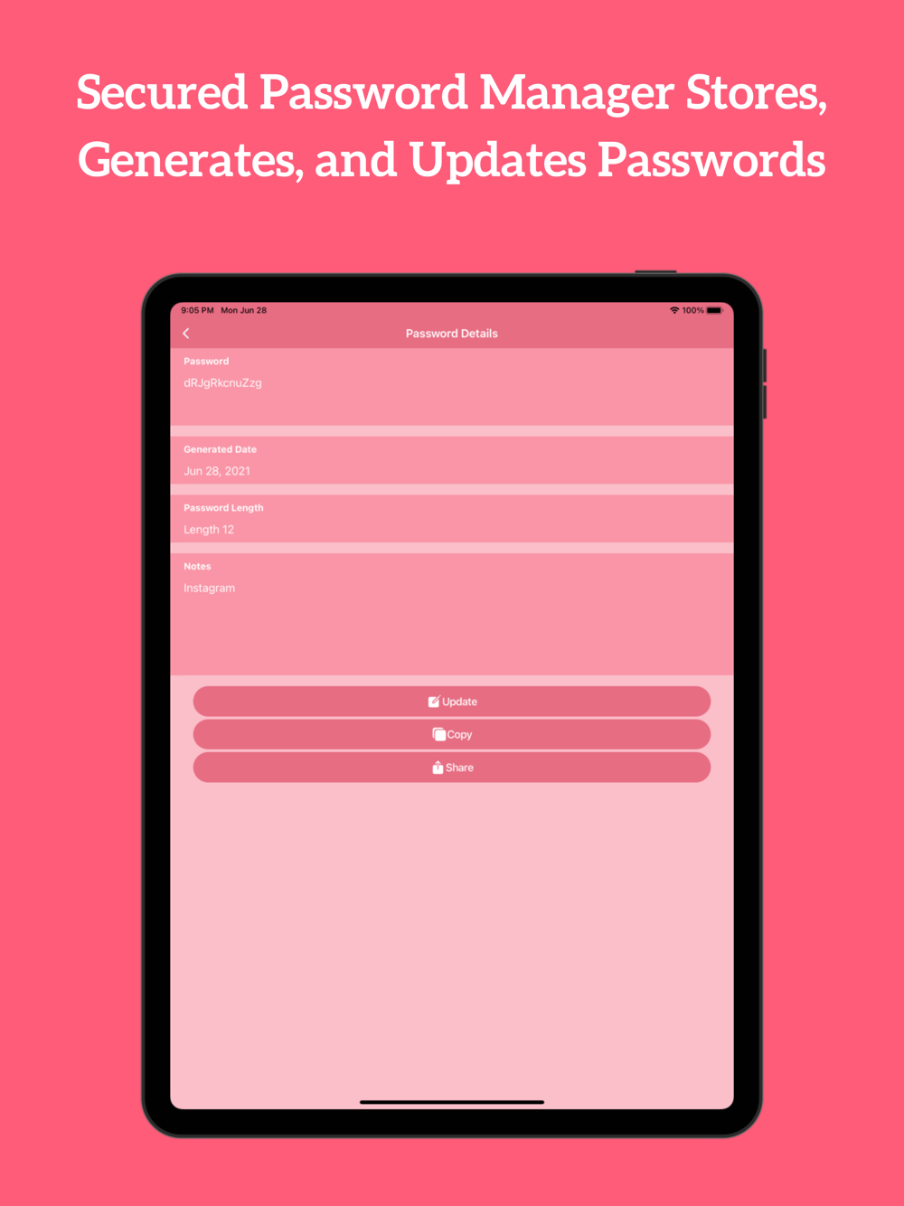 Password Generator is a tool that securely generate and manage strong, unique, random password for each of your accounts. This app is just not generate strong and secure password but is also store and remember your saved password and you can manage saved password anytime and anywhere.