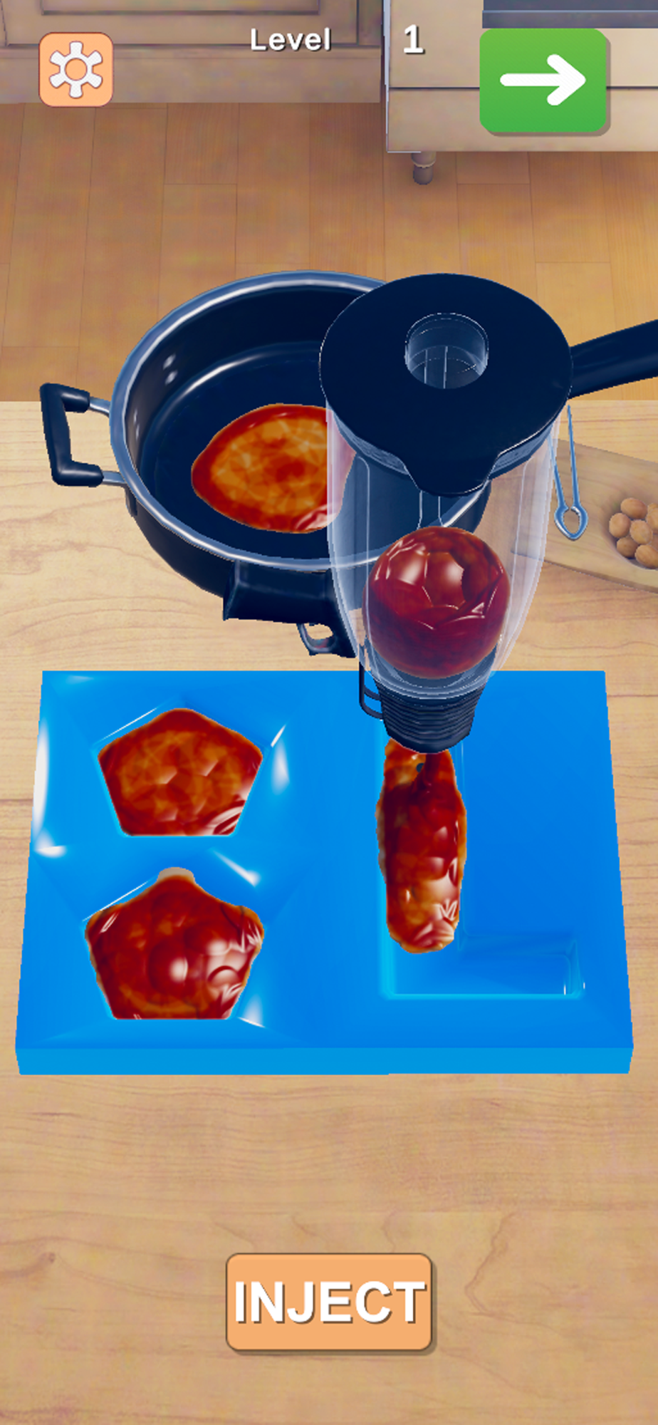 Melt chocolate, frozen honey, ice, and colorful jelly with your flamethrower! Then fill up different molds with a cream injector! Be the best cook in the kitchen!