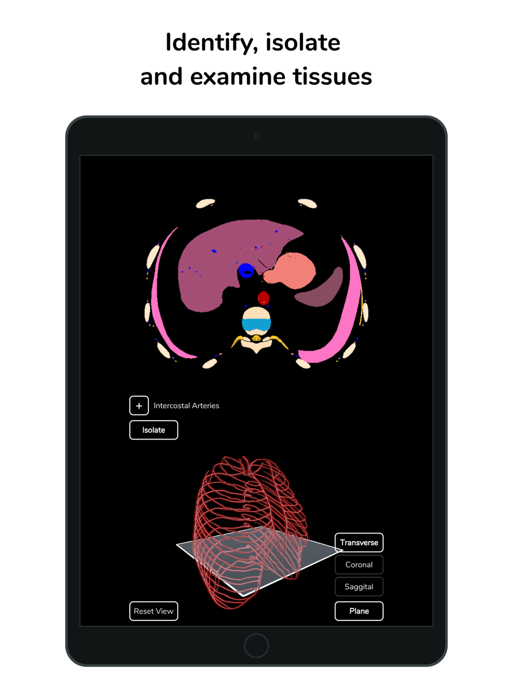 Deepscope Radiology Anatomy - learn radiological anatomy for CT and MRI and other medical scans. Understand the anatomy through perfect segmentations and clear labelling. This app gives you access to more than 200 nearly perfect tissue segmentations on detailed simulated radiological scan slices (CT/MRI), so you'll know your superior mesenteric ganglion from your SMA on scan slices in the finest detail possible. Medical imaging anatomy is useful for many types of users from medical school anatomy to grey's anatomy. Unlike other anatomy apps this focuses on Radiological anatomy so you can understand CT scans and MRI scans and what tissues look like in 2D/3D
