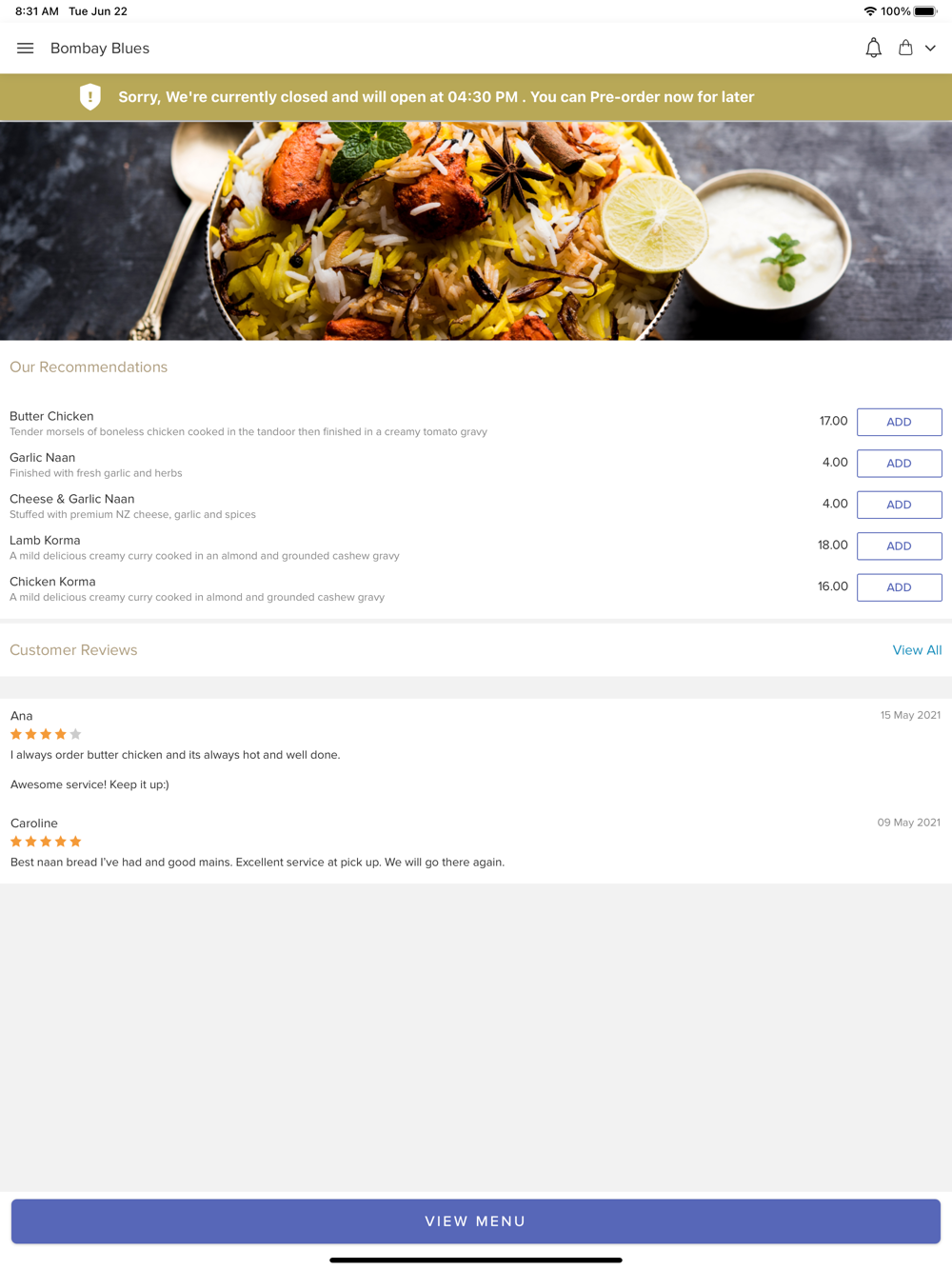 We offer a world of flavours and spices, which all comes together to create a dining experience that will transport you to another world. Our chef prepares all of our authentic dishes completely fresh, we also offer a wide range of authentic Indian cuisine to suit anyone's tastes. We have a new online ordering app which displays our entire menu - so please feel free to browse, find your favourite or try something new, and enjoy our restaurant quality meals in the comfort of your own home.