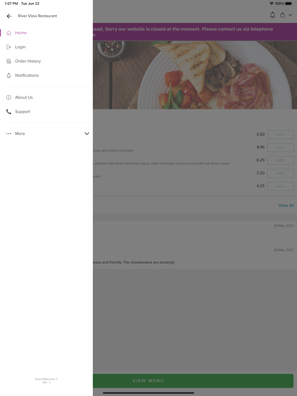 Thank you for visiting River View Restaurant in Swansea. We hope you enjoy our online ordering app and your food.