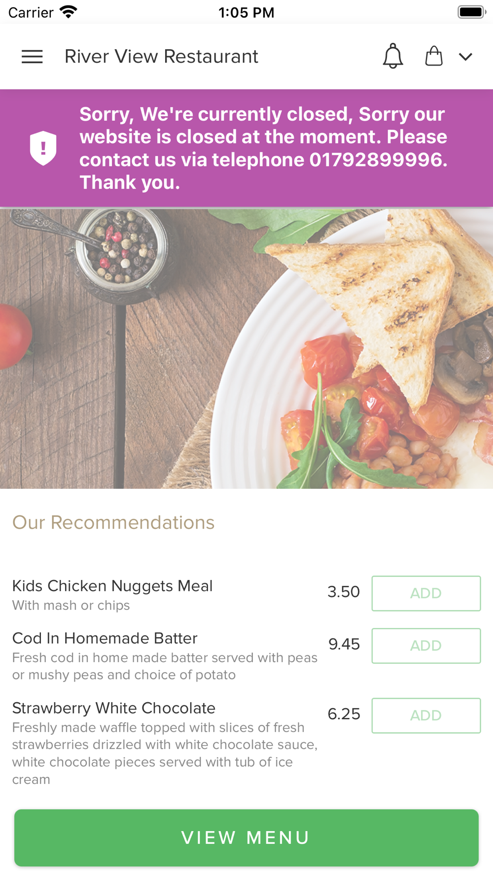 Order food online from River View Restaurant! It's so easy to use fast and convenient. Try our new online app which contains our entire takeaway menu.