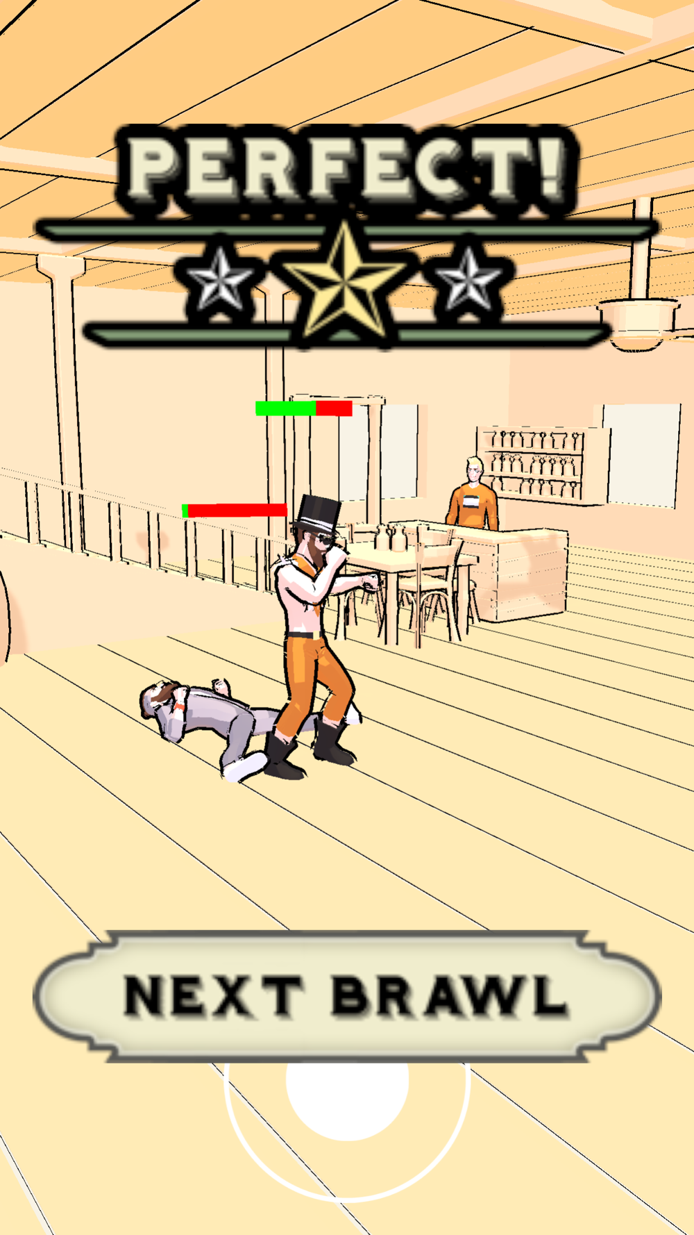 Bar fights have always been fun. In this game, our drunk friends are fighting each other. You have to defeat your opponent in order to progress in the game. But there are also people who are not happy with your fight. Bartenders can throw beer bottles towards you, you have to put your character in the right position to avoid them.