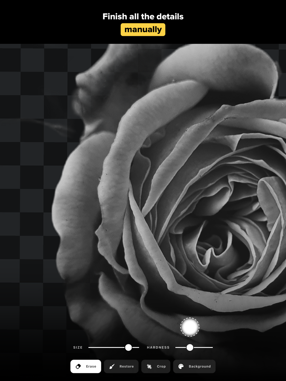 You no longer need to manually try to get rid of the background. Eraser AI uses artificial intelligence to automatically cut it out in a second. And if the result is not perfect, you can always correct it the way you need.
