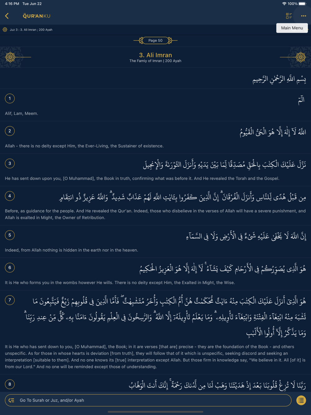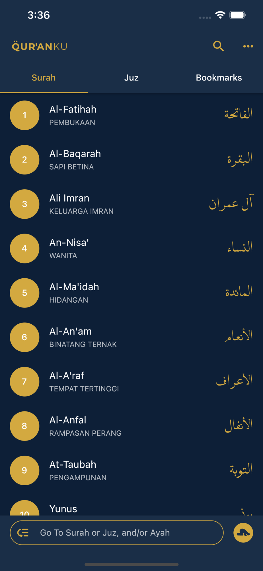 QuranKu is an Al Quran application that provides you a nice user interface so that you can read the Quran comfortably. It provides Indopak, Indonesia's Ministry of Religious Affairs (Kemenag), and Utsmani arabic fonts. It also provides English, Indonesia, French, Turkish, Malay, and other translations.