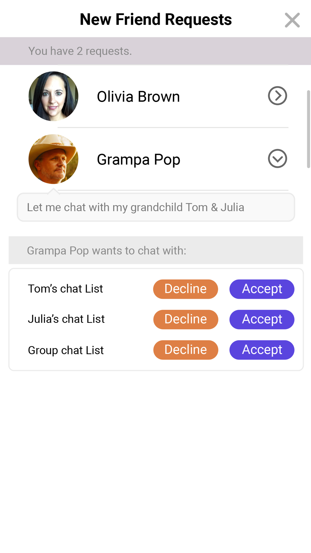 The Learning Lodge® Family Account holder must approve before you can contact a child. Once you've signed up for a Learning Lodge® account, send the child's account a request to join their family.