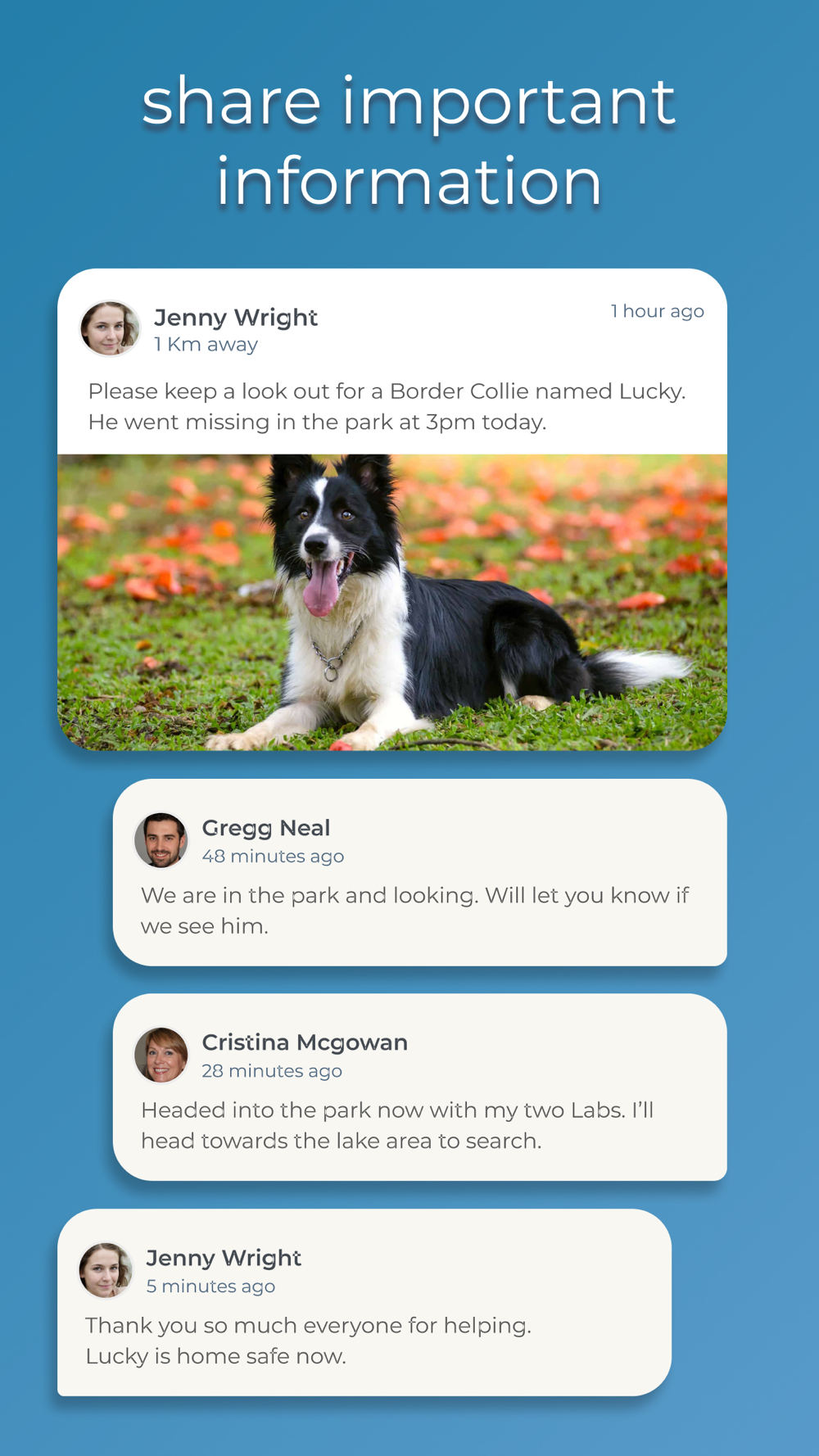 ChatRadar is a tool that allows you to reach out to your community. If you have a question or need help with something, just post a Ping. For example, if you've lost your dog, you can post a Ping to ask people nearby if they've seen them.