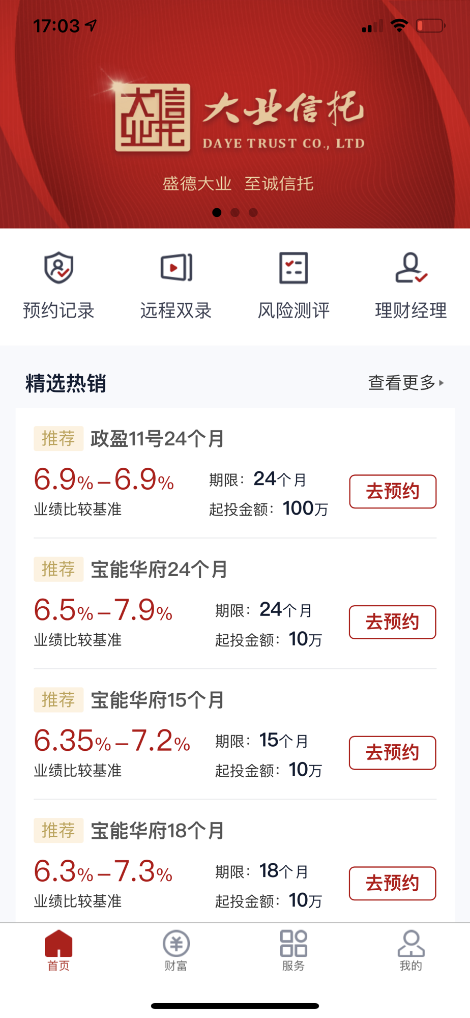 大业信托APP,是大业信托为高净值客户搭建的官方私人财富管理移动平台。客户可通过线上渠道接收我司的全方位服务,主要内容包括有线上注册、实名认证、产品预约、视频双录、电子签约等服务。