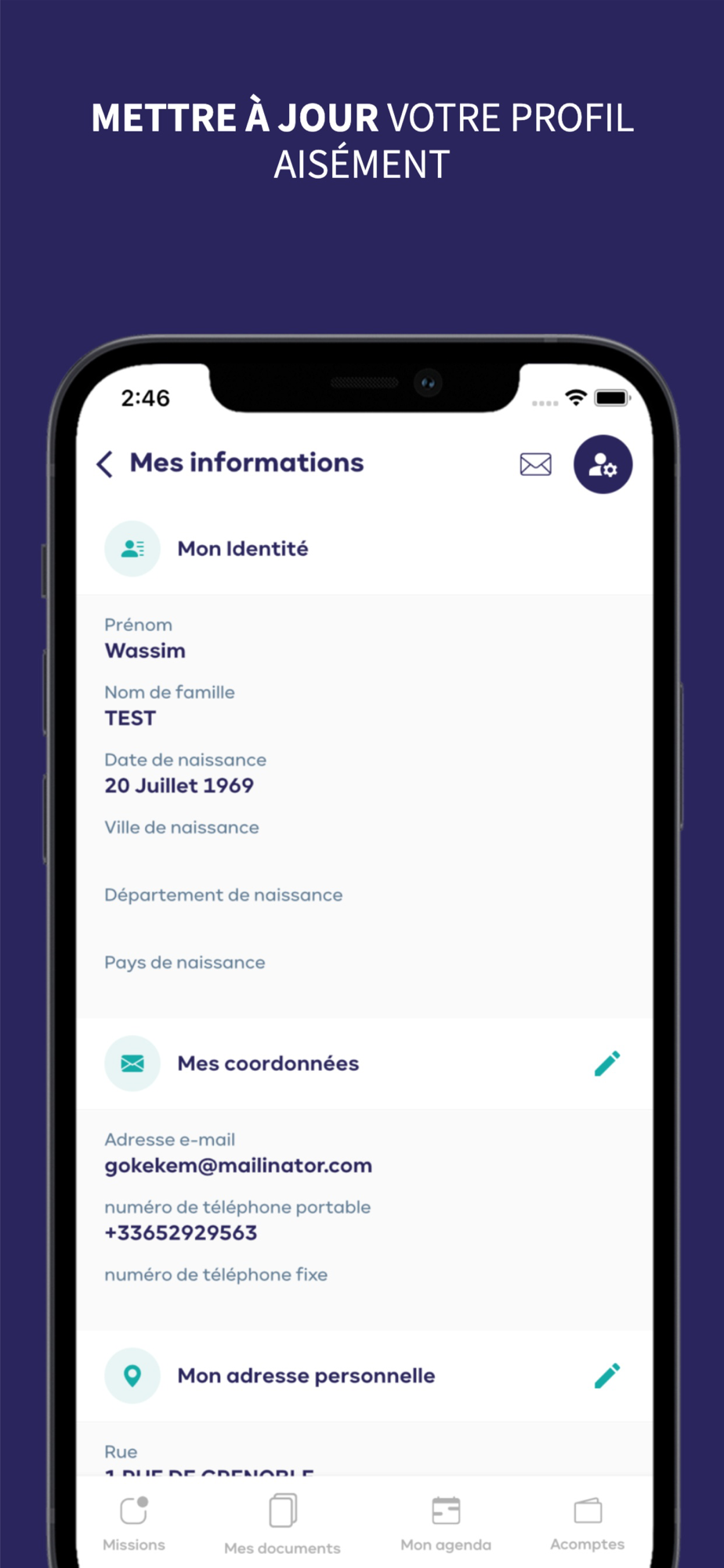 • Signer, gérer l'ensemble de votre dossier (contrats de missions, vos fiches de paies, …)