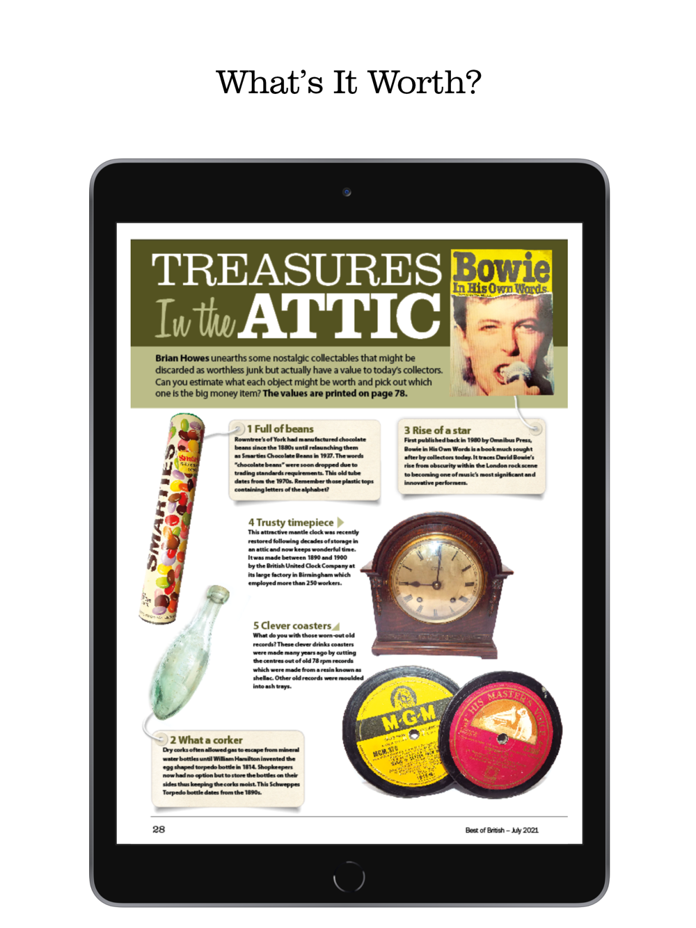 Best of British is filled with fascinating stories of day-to-day life in Britain throughout the twentieth century, as well as celebrating the finest parts of our heritage that still survive today. Best of British looks at everything to do with the tastes and trends of each decade, so you can read all about the fashion, music, transport and food that the country has experienced throughout the ages. Readers' letters and photographs play an integral part in every issue, so you can write in with your own memories, or even attend one of the revival events listed each month that take place all around the UK. Please note the free calendar is not included in your digital subscription.
