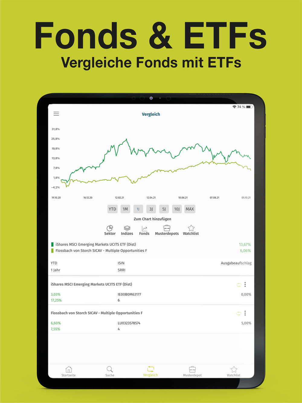 FONDS-ANALYSE: Erhalte detaillierte Informationen zu einer Vielzahl von Fonds, einschließlich Performance-Historie, Risikobewertung, Kostenstruktur und Portfoliozusammensetzung. Vergleiche verschiedene Fonds, um den besten für dich auszuwählen.