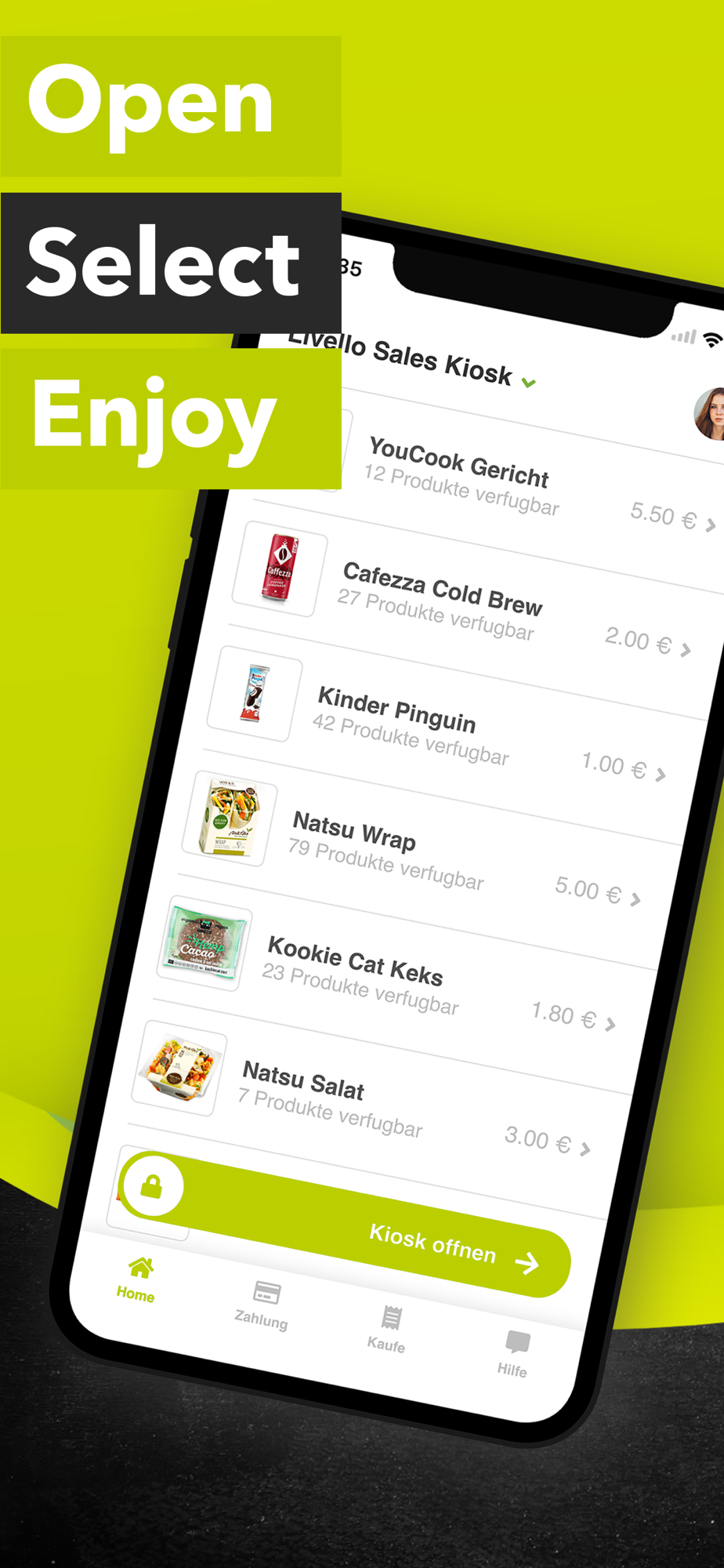 The Hungry Club app shows you at any time of the day what delicious and balanced food is waiting for you in your smart kiosk.