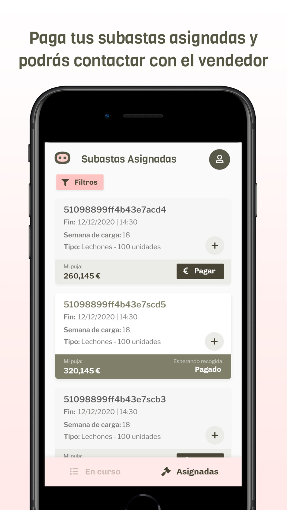Con la aplicación de Mercopig podrás gestionar tus subastas o ventas desde el teléfono móvil.
