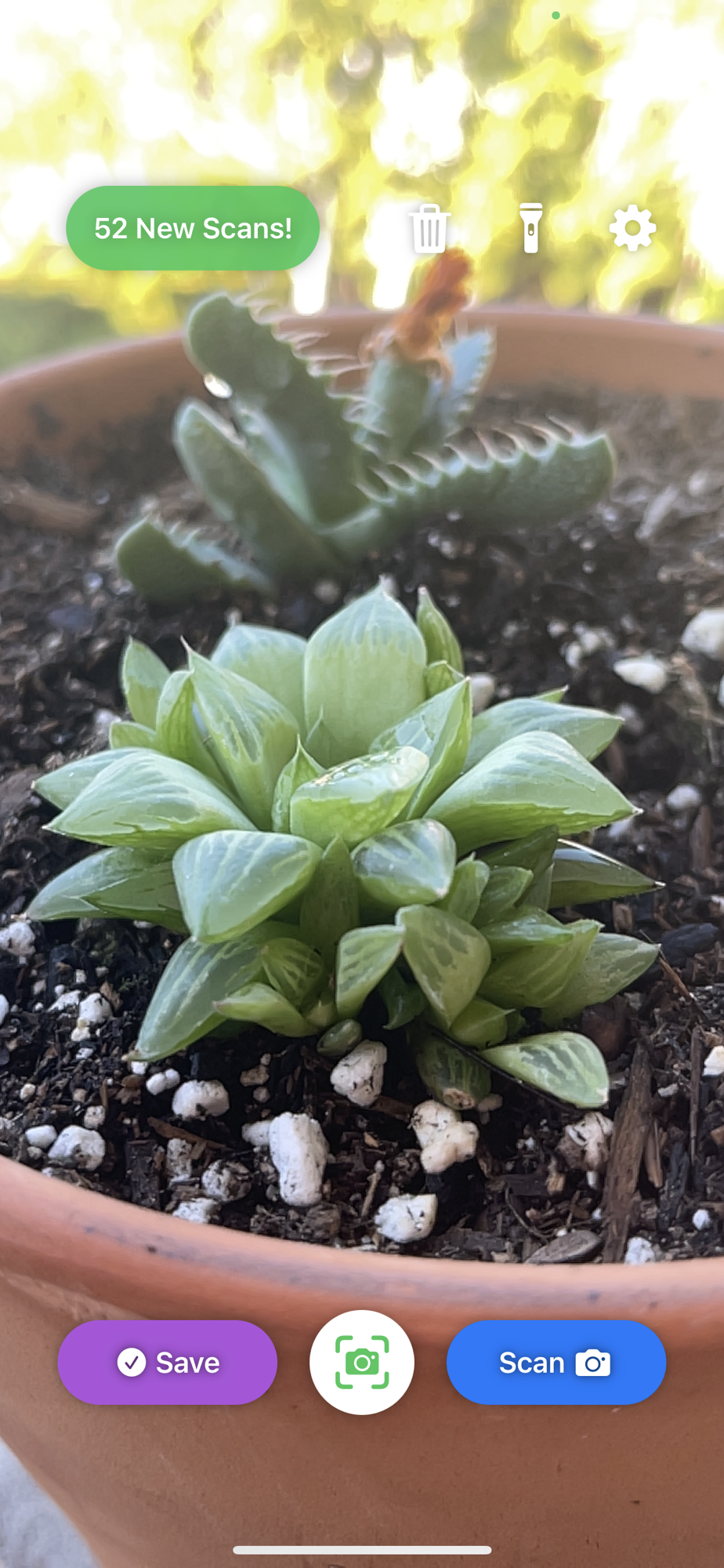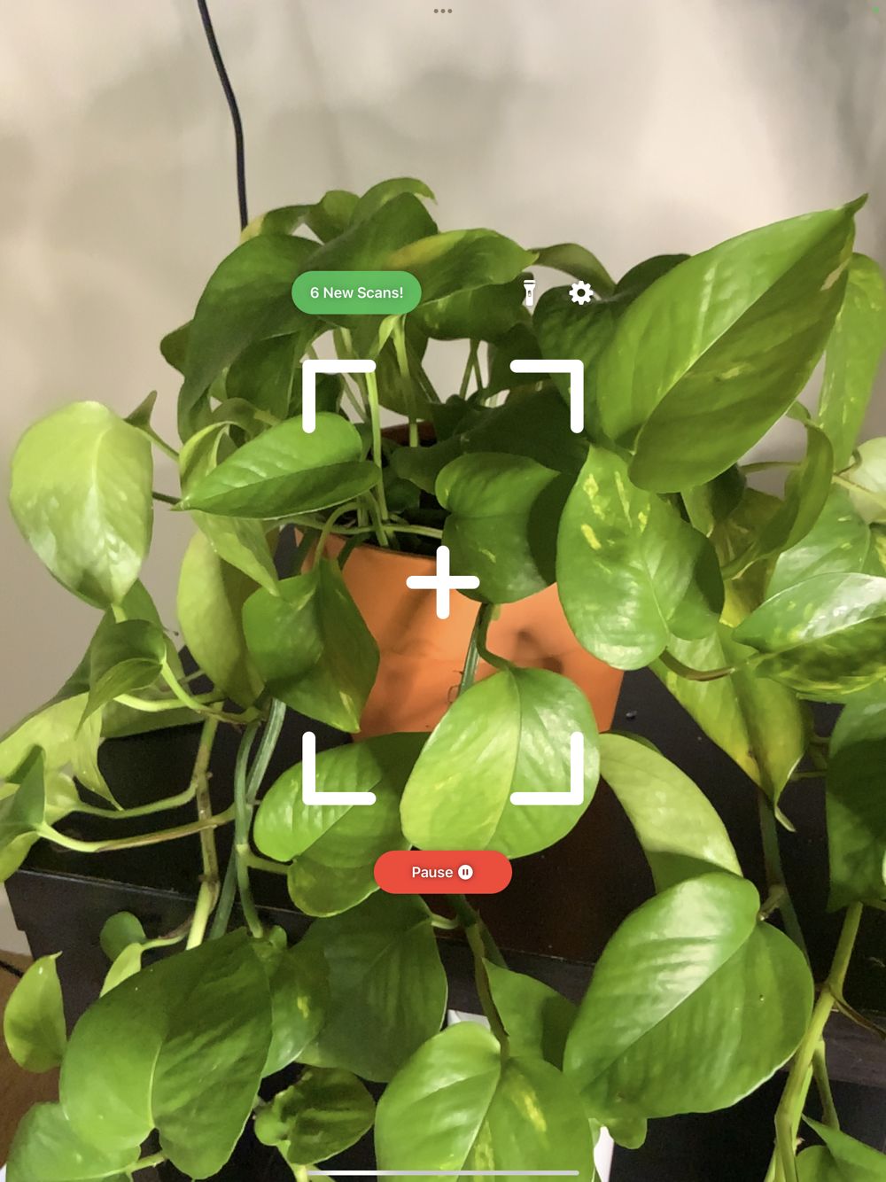 Press the Scan button to capture a preset amount of images as you move closer to or pivot around your subject, or Tap the Camera button to capture a single picture. Toggle the Flashlight to improve results in low light conditions, and tap the Save button to export any captured images to the Photos app.