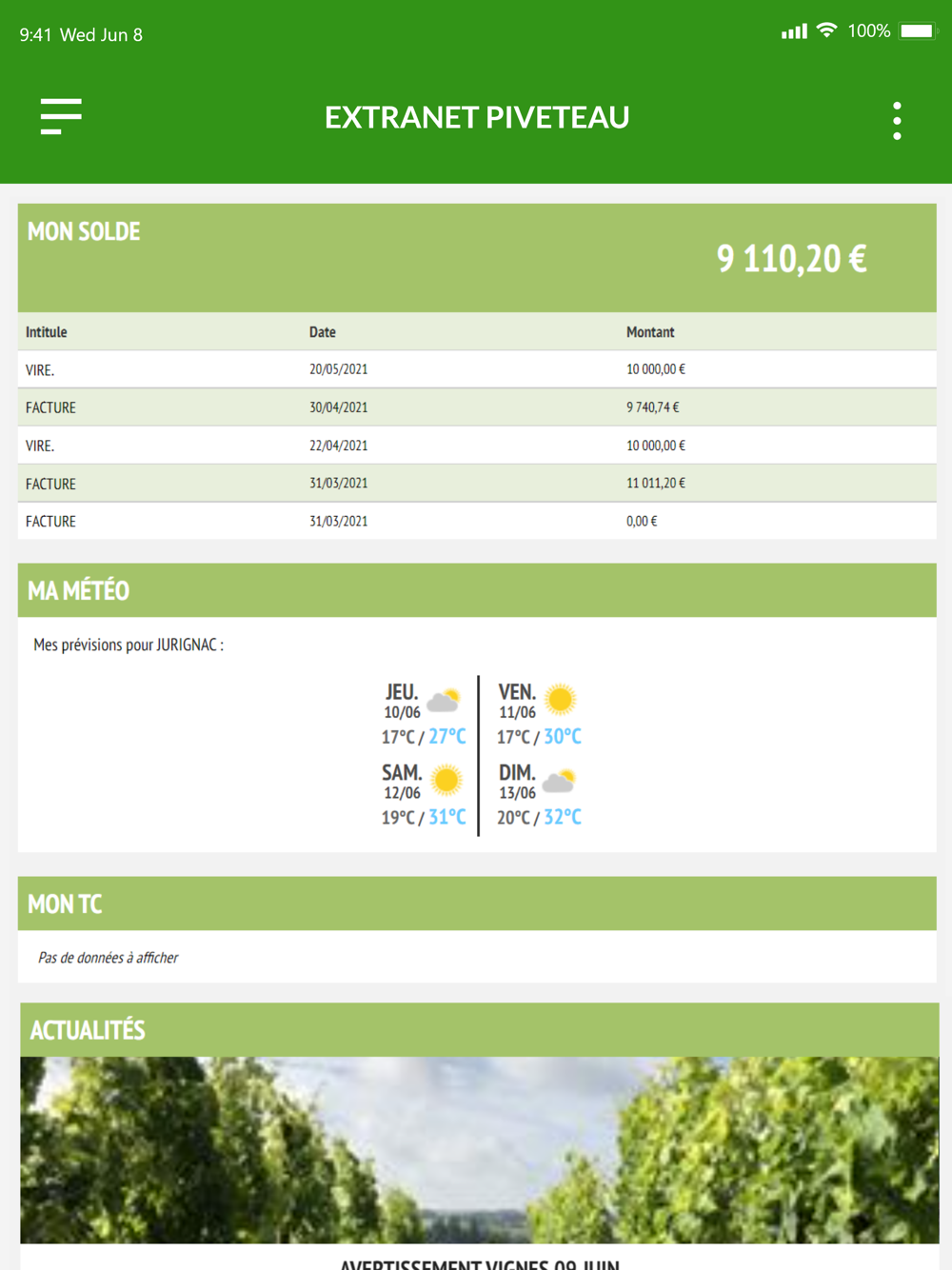 L’application mobile vous permet de retrouver votre compte agriculteur sur mobile. Factures, contrats, commandes, informations techniques, … L’application mobile est là pour faciliter les échanges et vous accompagner dans le développement de votre entreprise.