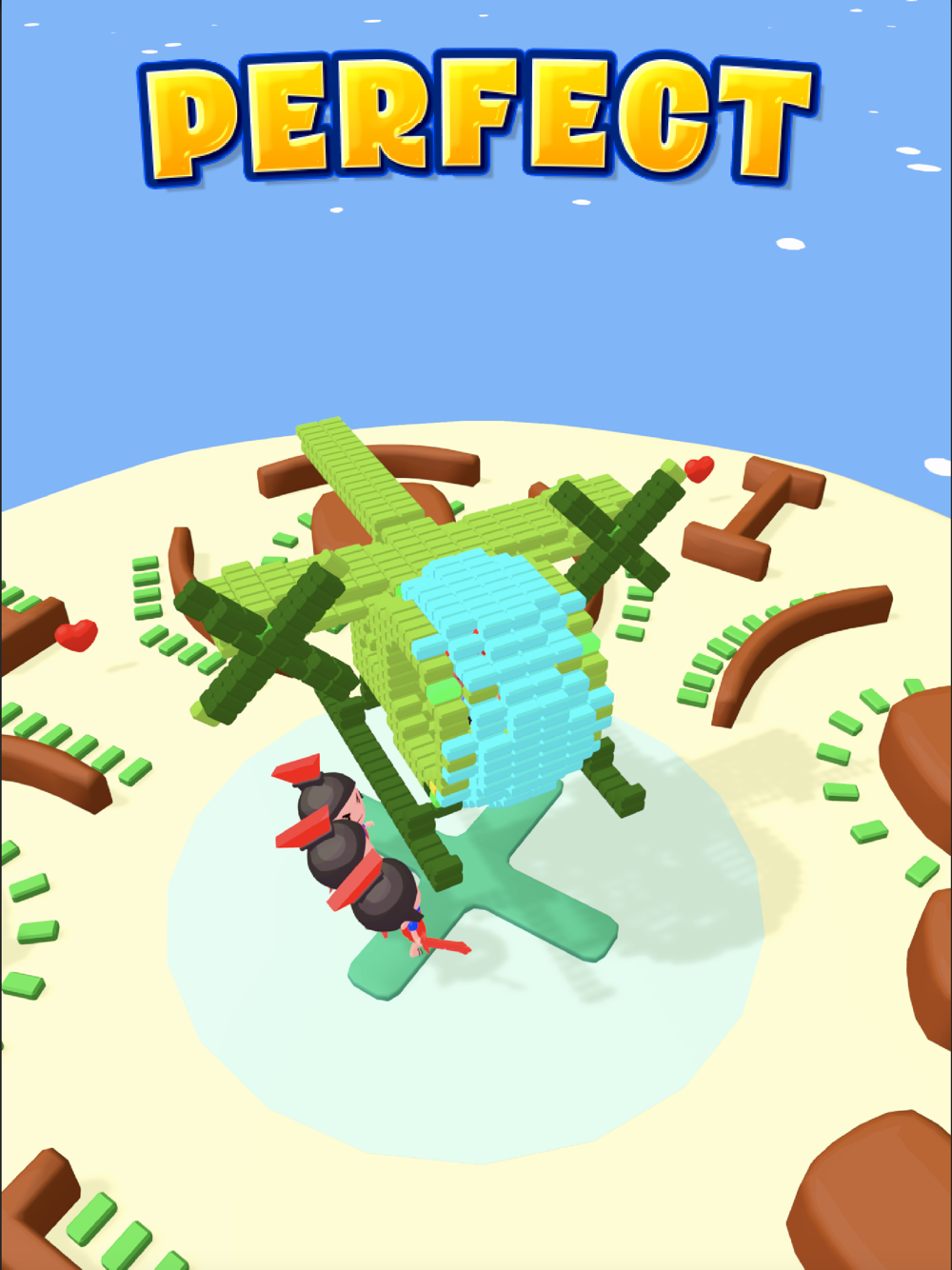 A Platform! Has many bricks everywhere. You will help mini hero to collect and stack bricks. When mini hero brings bricks to the center of the platform automatically run-away vehicle is being built.