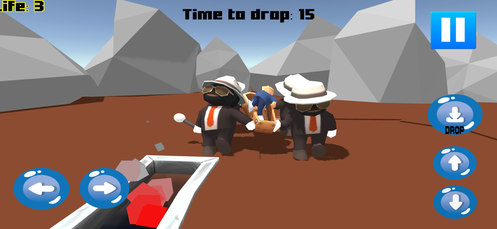 There are pallbearers dancers with a coffin. A funny ragdoll physics character that needs to go in the grave. You know what to do.