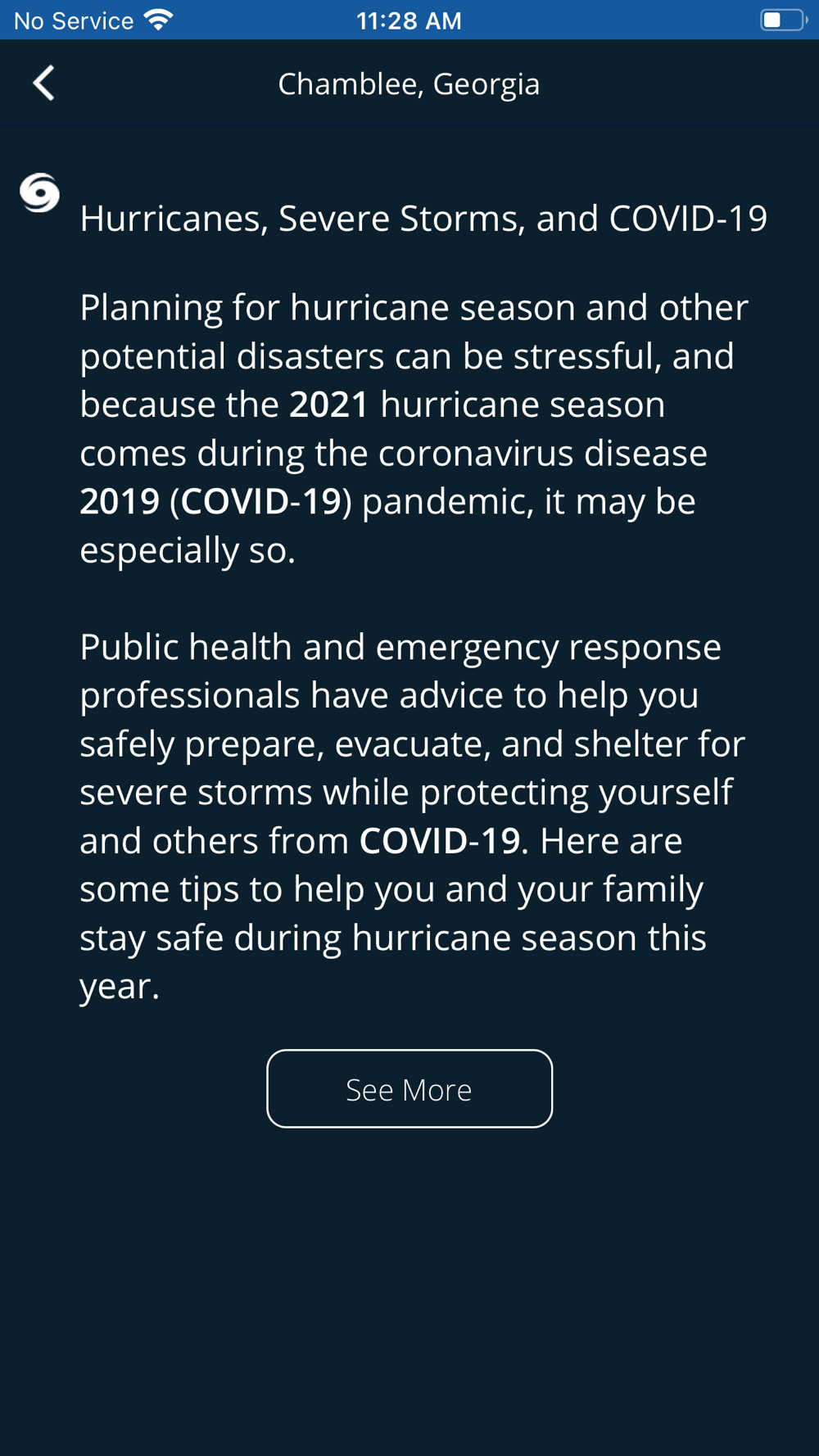 - Be Prepared: Make preparedness plans with guidance from the CDC during extreme weather seasons and breaking hazardous conditions.