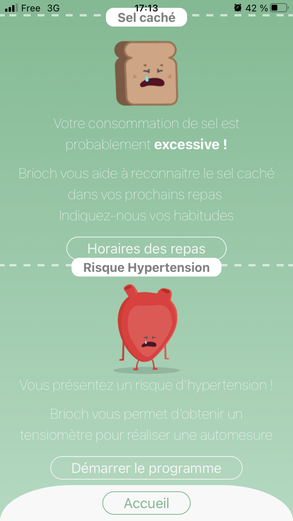 En complément, l'application vous affichera des rappels pendant 7 jours avant vos repas pour vous aider à trouver le sel caché dans vos aliments.