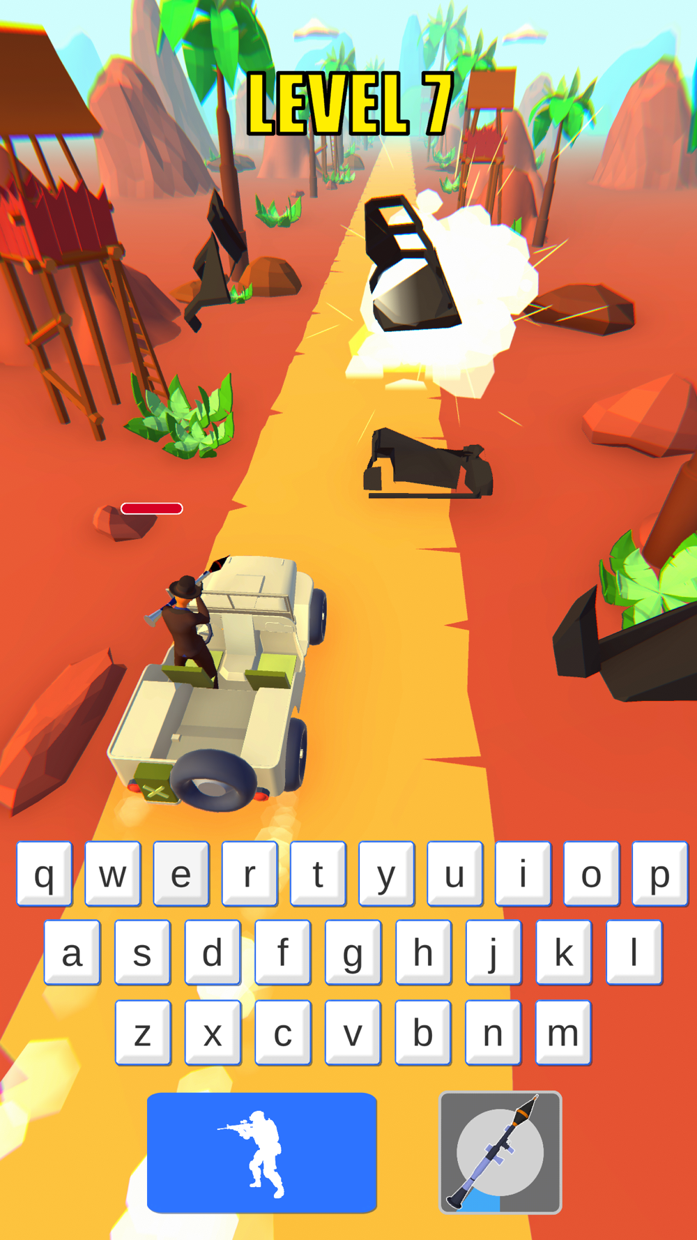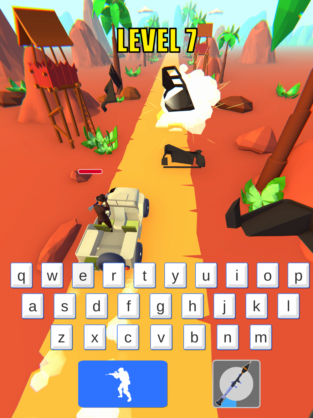 Let's see how fast you are. Typing fast will both save your life and help you win. Each correct letter represents one bullet.