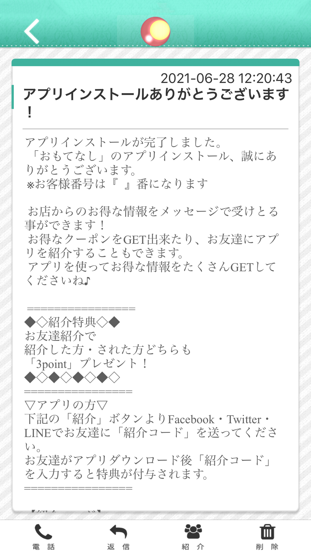 おもてなしはSNSを通じてお友達に紹介する事が可能です。