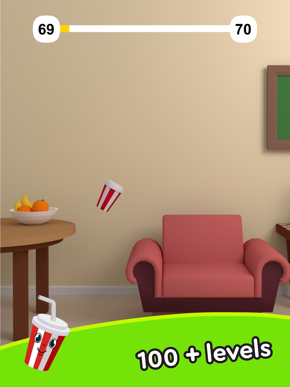 Toss cup with a drink to bottle jump in 3D world and get to the other side of the room! Tap the screen at the right moment to bottle flip 3d or double bottle flip the drink. The more levels you achieve, the challenge will be more awesome!