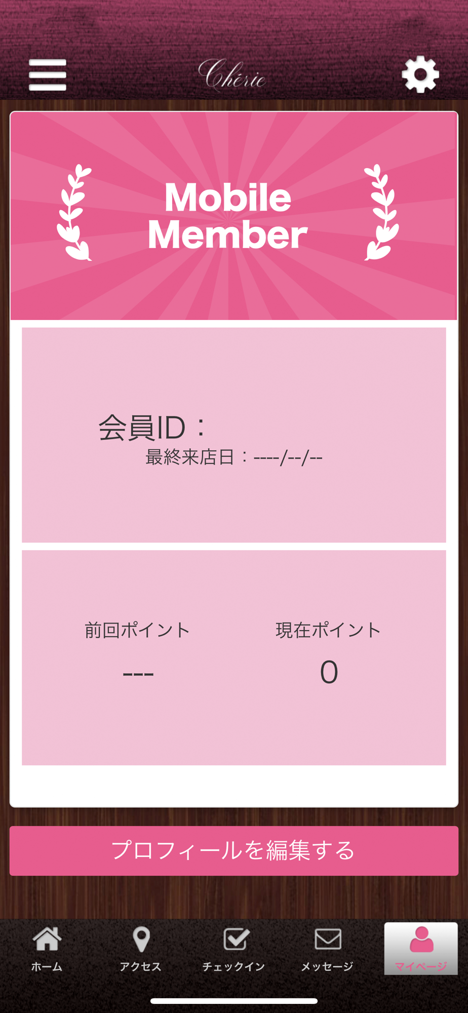 このアプリでは、Cherieの最新情報の受け取りや便利な機能を使う事ができます。