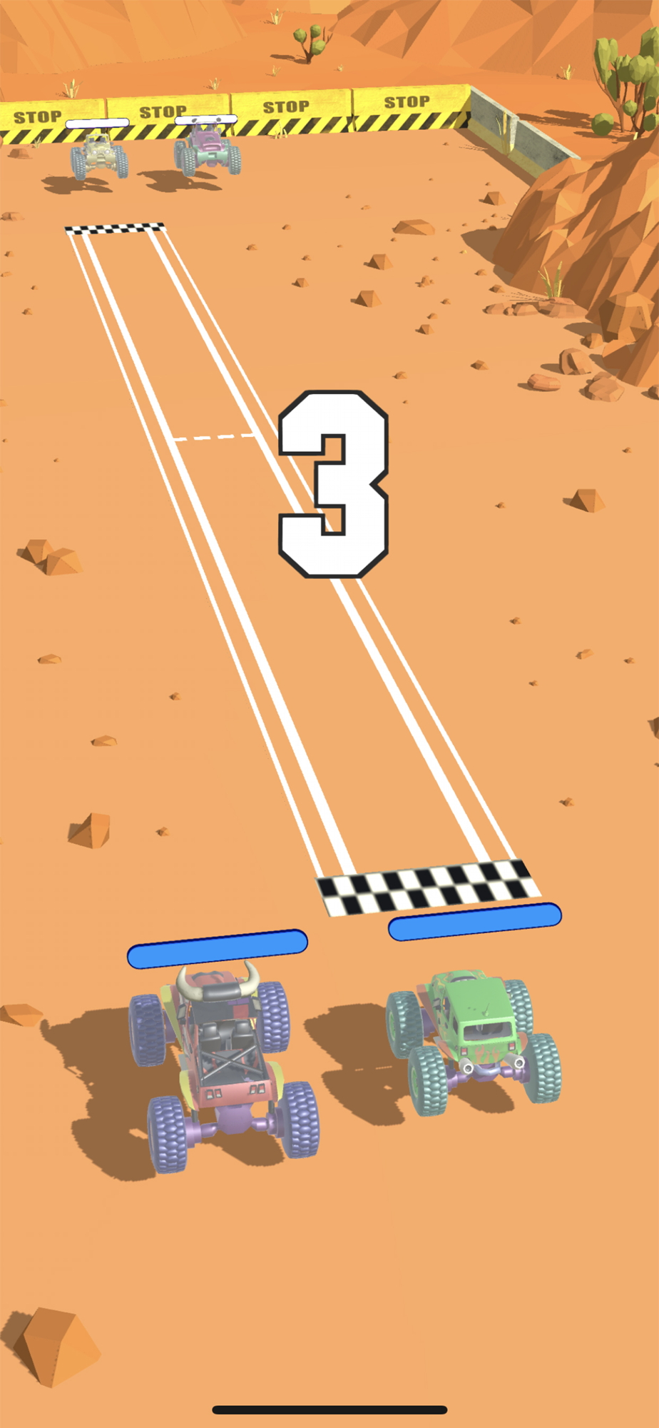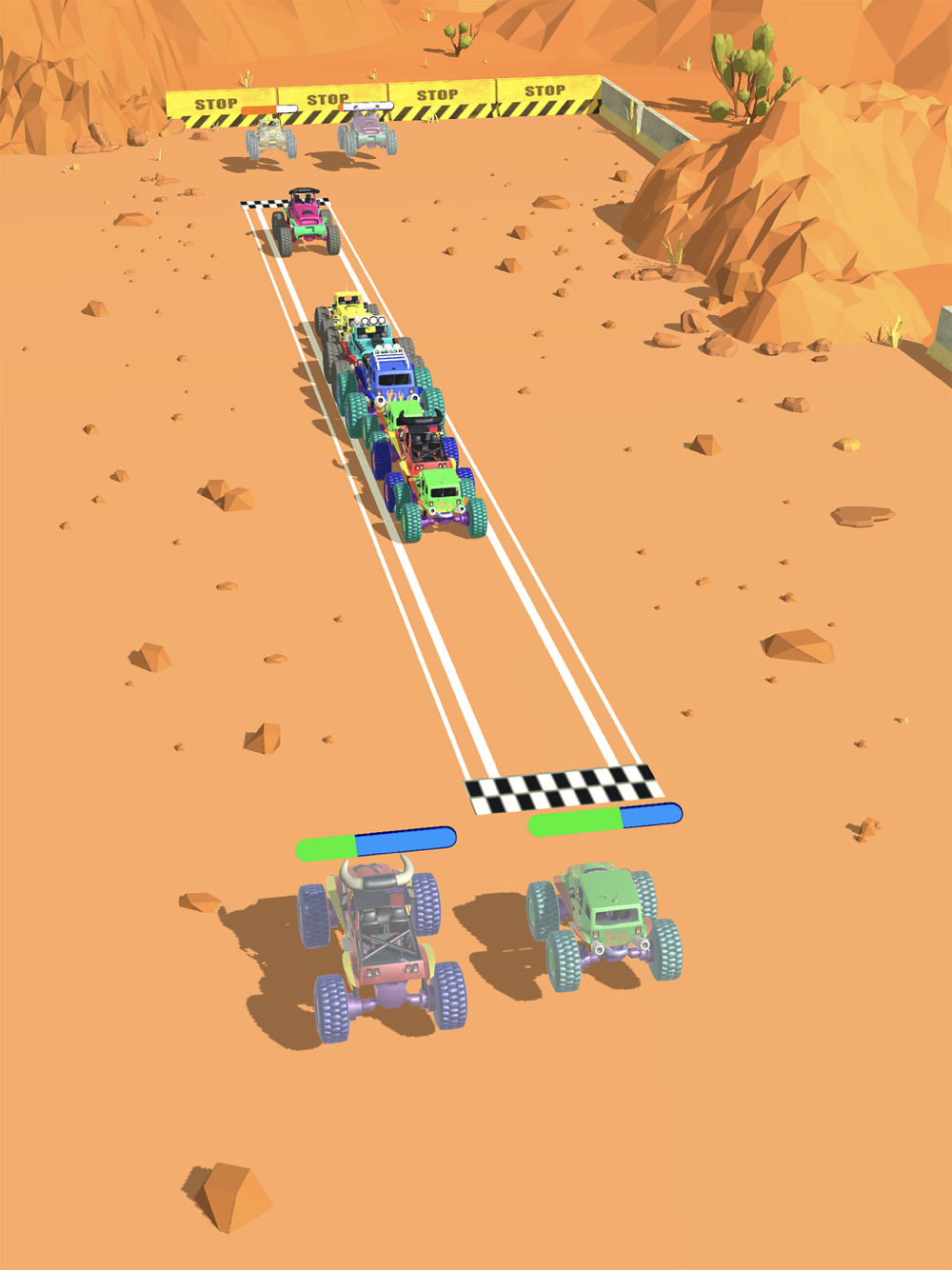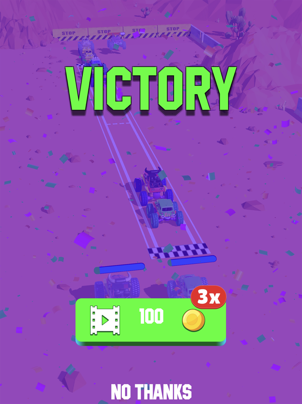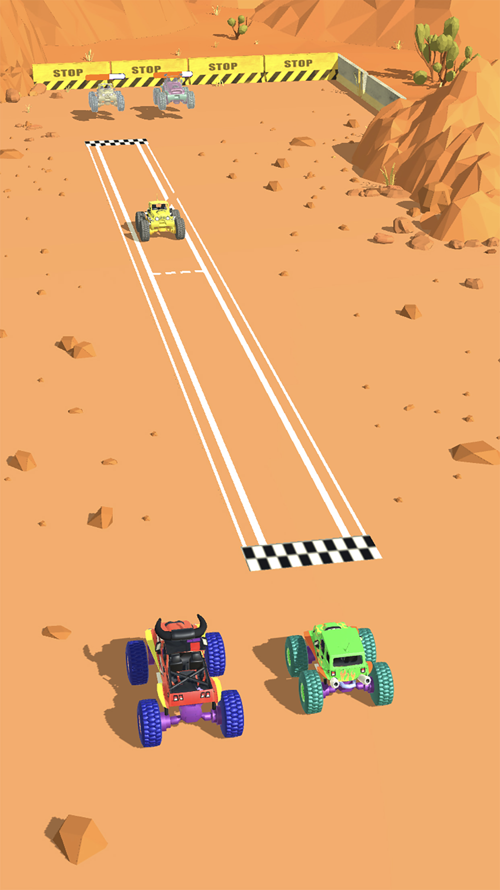 Merge two monster trucks that are the same size to create bigger ones, the bigger the better.
