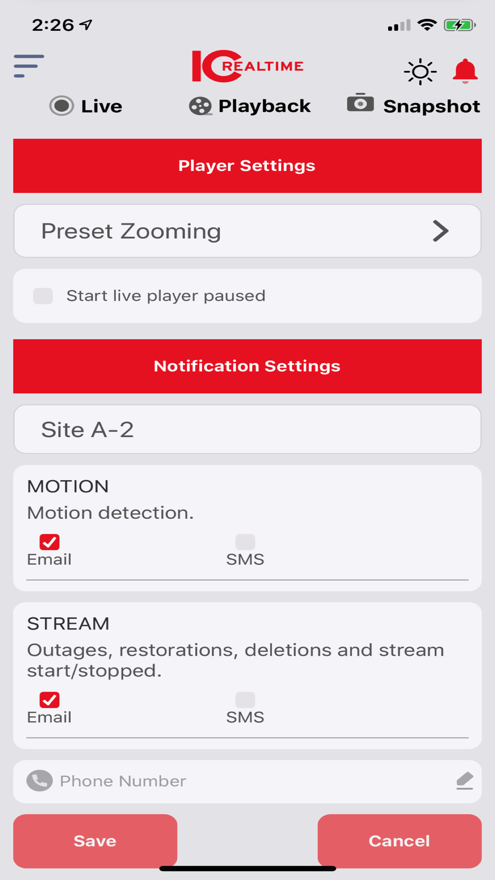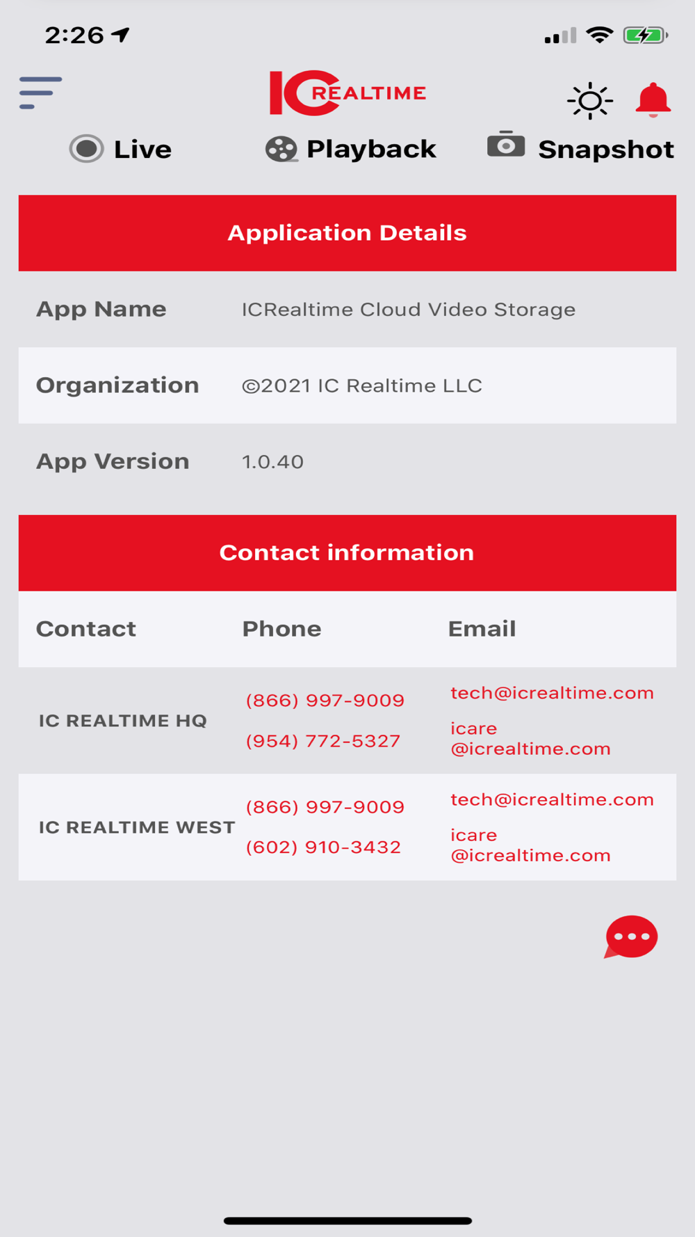 ICRealtime Cloud Video Storage is a companion to our desktop app. This will let you log in, view your cloud video recordings, view your devices live, and review motion and other events.