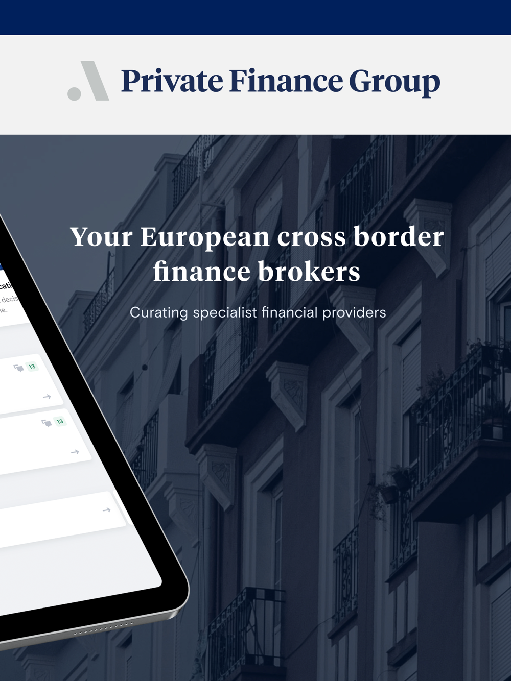Access the Private Finance Group Private Office to manage your financial applications and the lifecycle of your assets in France, Spain and Portugal. New users can apply and get instant decisions in principle and make appointments. Clients can manage their applications as well as any other advisers for the transaction and management of the property.