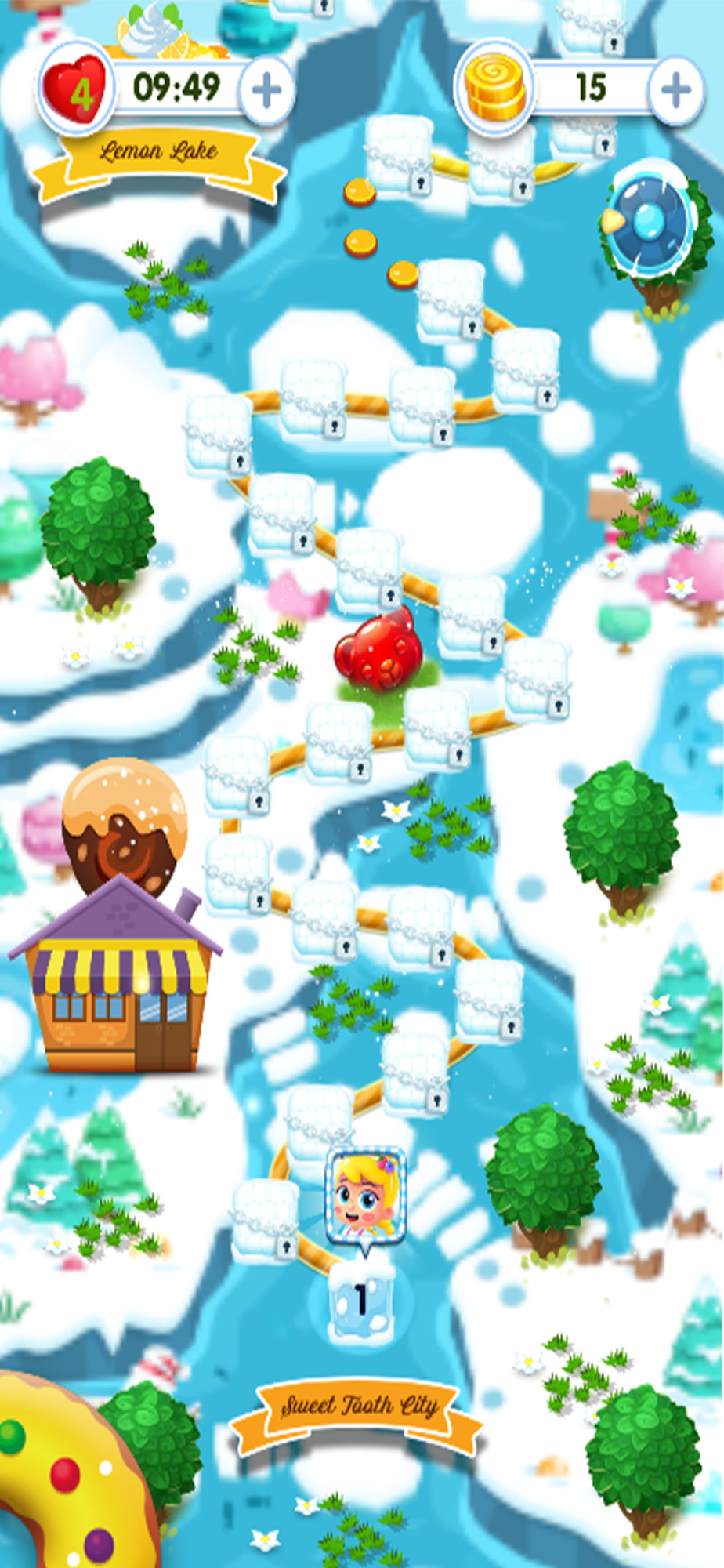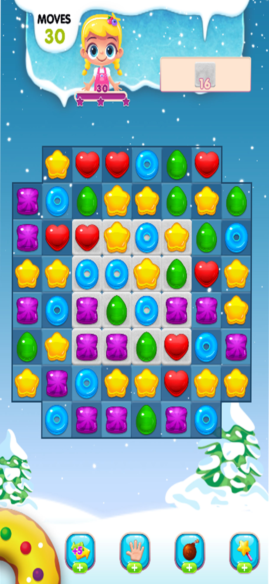 Frozen Sweet Sugar Candy bomb puzzle game with delicious candy gems in which you basically have to crush 3 yummy candy to achieve the game goals!
