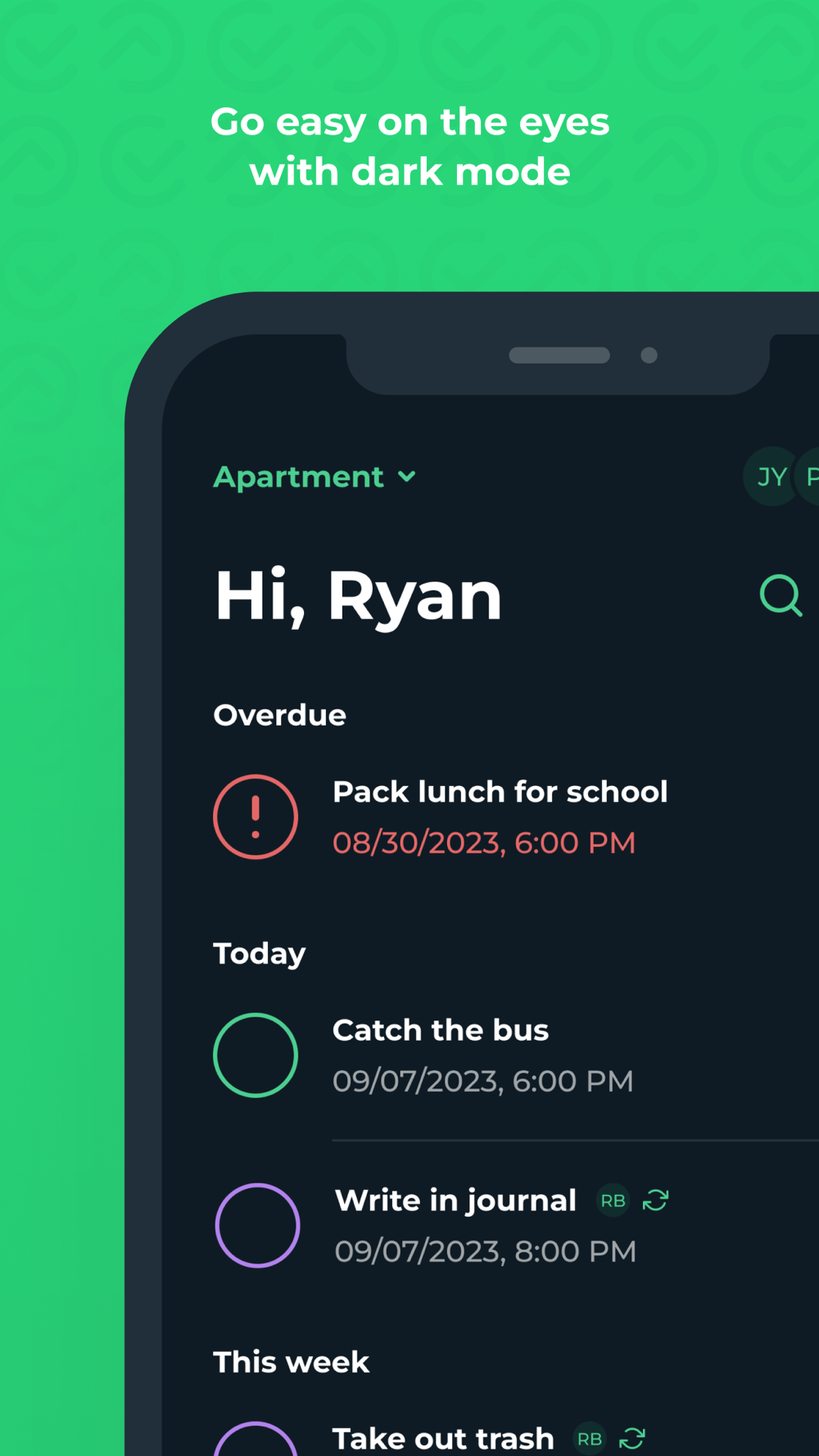 - Filter and organize your chores and tasks however you want - by color, assignee, due date, etc.