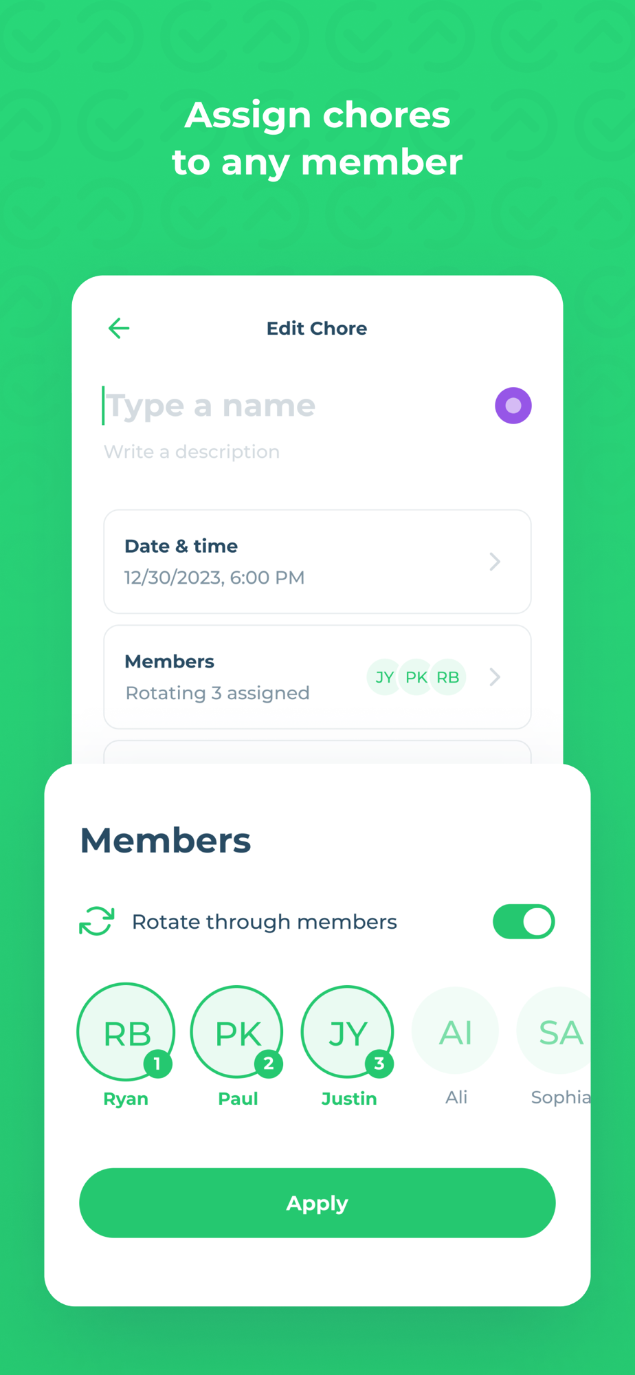 - One-time, daily, weekly, monthly, or yearly chores with more customization within