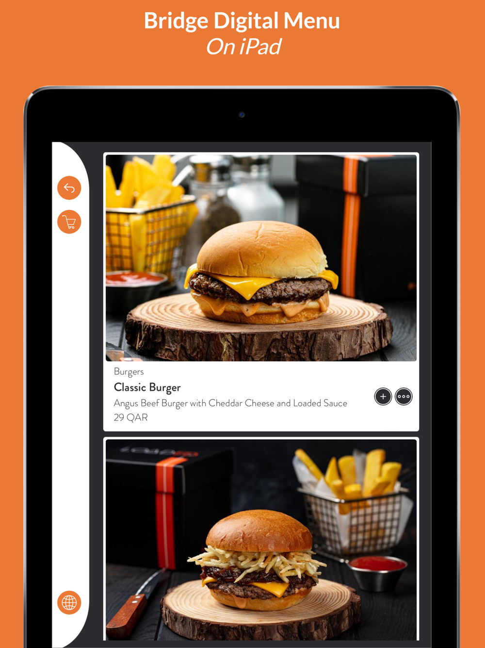Using Bridge Digital Menu will give you full control of your menu, you can organize it the way you need, re-organize it whenever you want to, add or hide items to the menu based on the season or special events, promote items for several days or may be several hours, it is all under your control.