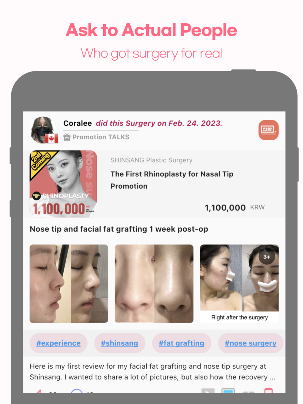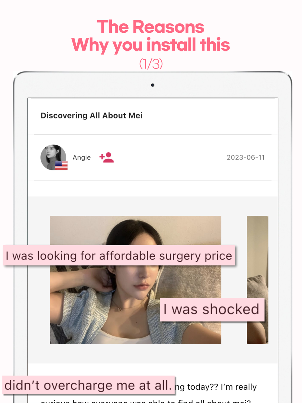 #Every_week_NEW_promos_coming #Reviews_by_one_who_ACTUALLY_did_surgery #Should_check_NEGATIVE_reviews_as_well #Compare_PRICES_of_treatment_you_want ** GET notification, New promos come every week Never miss your chance. Use the follow promotion feature to catch. AllaboutMEI offers promotions at least once per week. ** MEET people who ACTUALLY got the surgery No fake, no marketer's reviews here. You can ask and get information from who got the surgery for real. ** We DO NOT DELETE Negative reviews Compare positive and negative reviews together. We don't delete your thoughts. Crowds are always right. ** COMPARE Prices of treatment you want Hard to find prices? We give you prices without hidden costs. Here is an easy and smart comparison. *Customer Service We are open to hearing your voice. Please contact us when you have any questions about the app or service of All about MEI. E-mail :