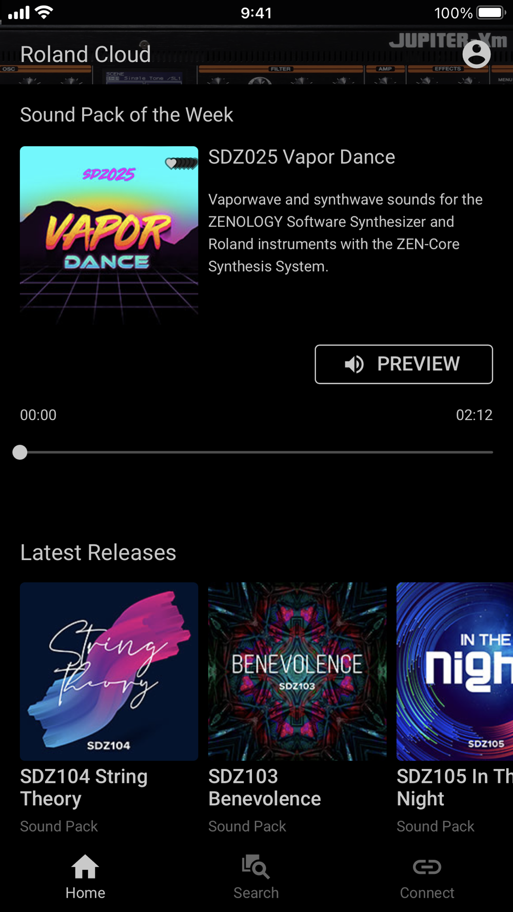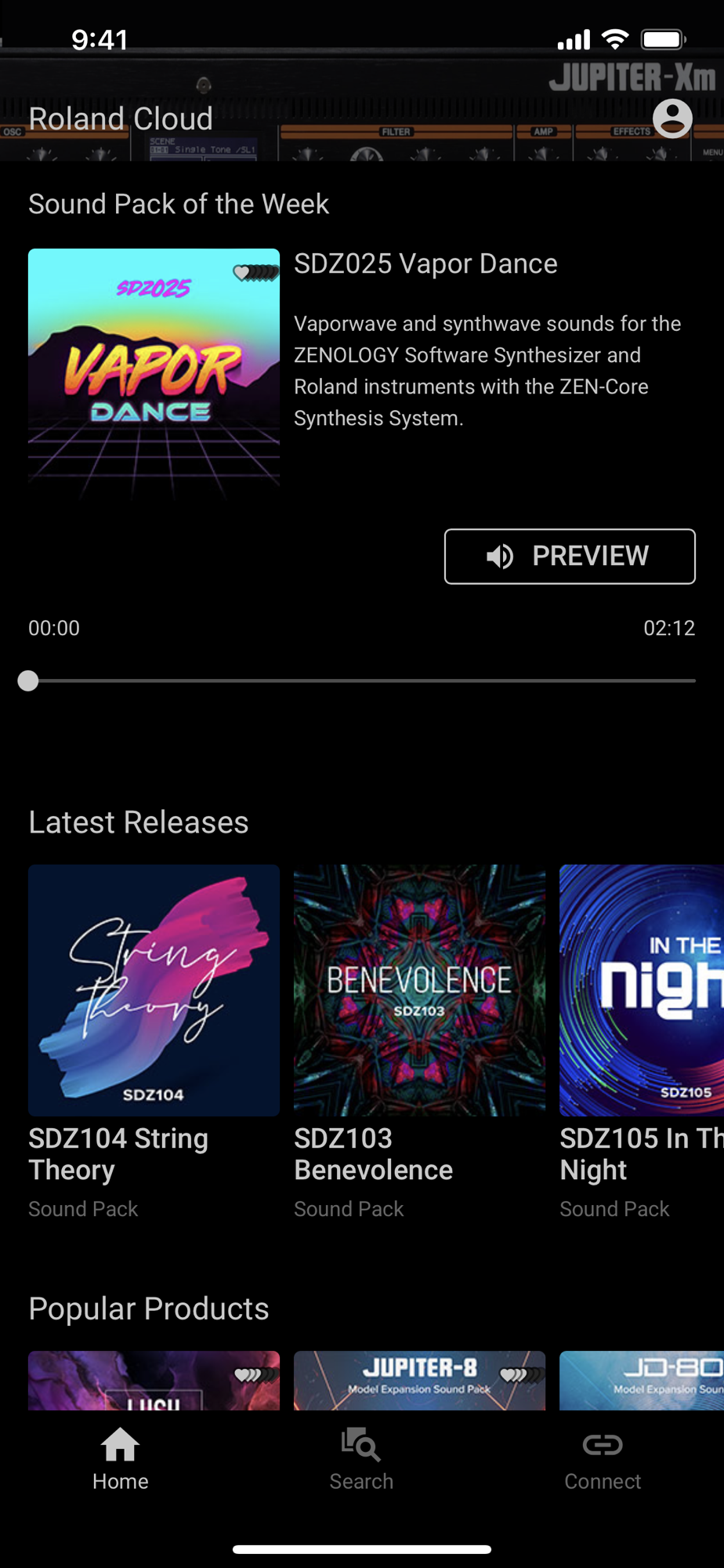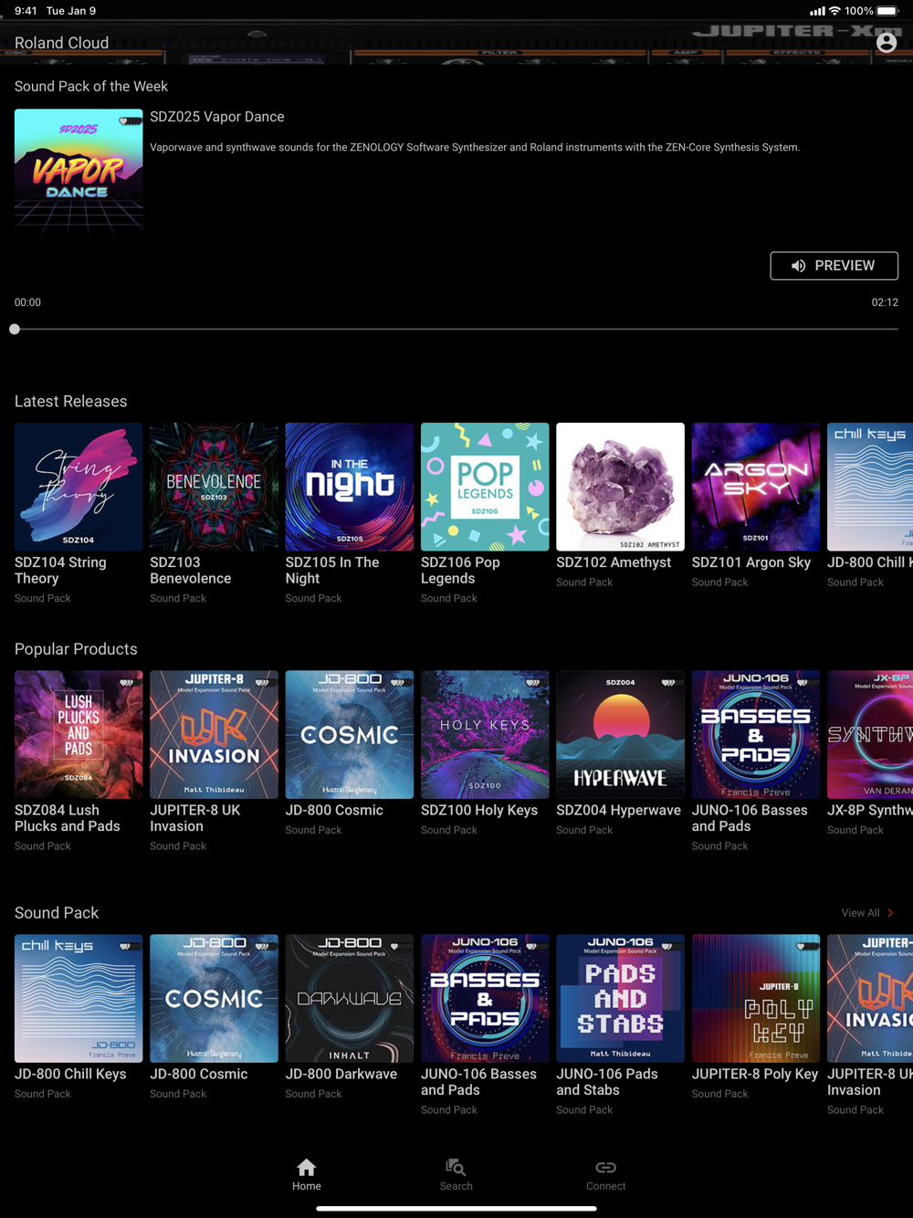 Roland Cloud Connect is an app which enables you to check tones on your JUPITER-X/JUPITER-Xm/JUNO-X/GAIA-2 via Roland WC-1, or, subscribe to Roland Cloud's paid Membership then install additional Sound Packs, Wave Expansions, Model Expansions, etc., to the JUPITER-X/JUPITER-Xm/JUNO-X/GAIA-2.