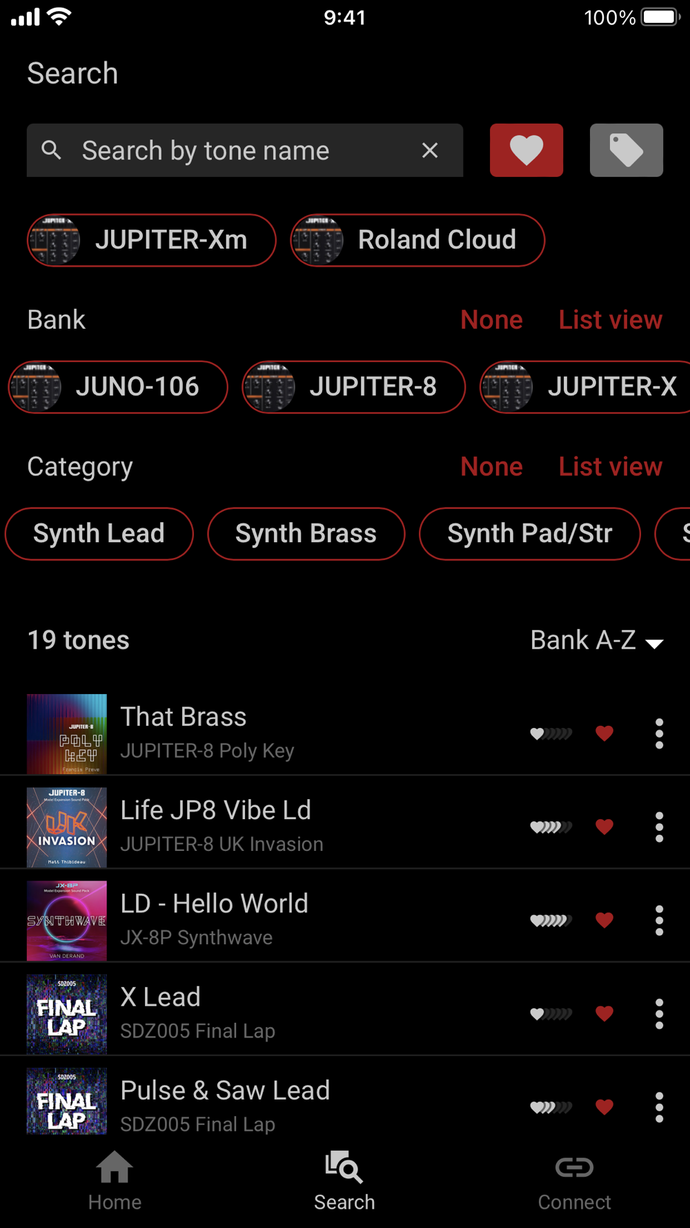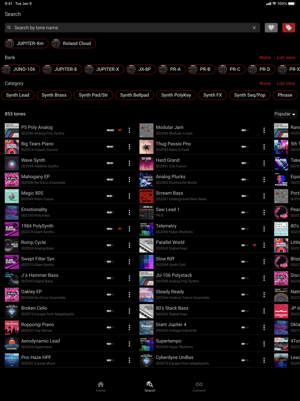 You can also preview Roland Cloud's various sound contents, or search for available tones and load each tone onto the JUPITER-X/JUPITER-Xm/JUNO-X/GAIA-2 for trial play.