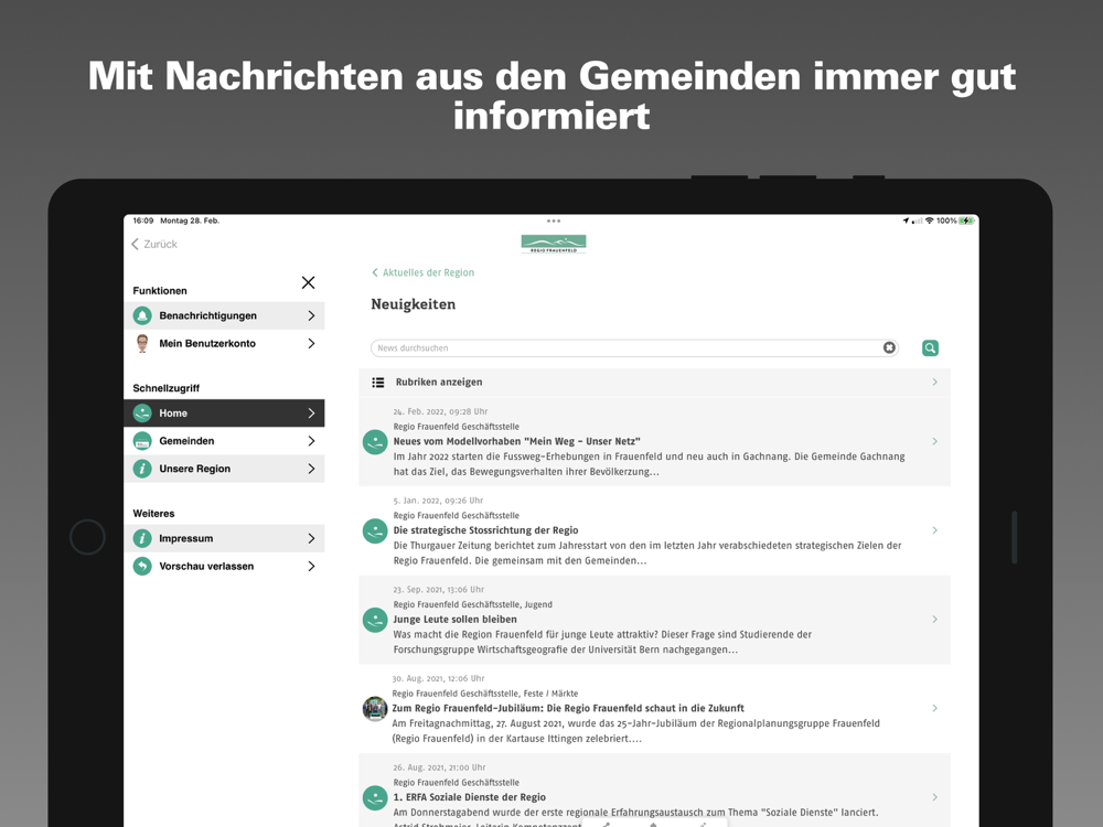 Eine App für die Bevölkerung der Regio Frauenfeld-Gemeinden.