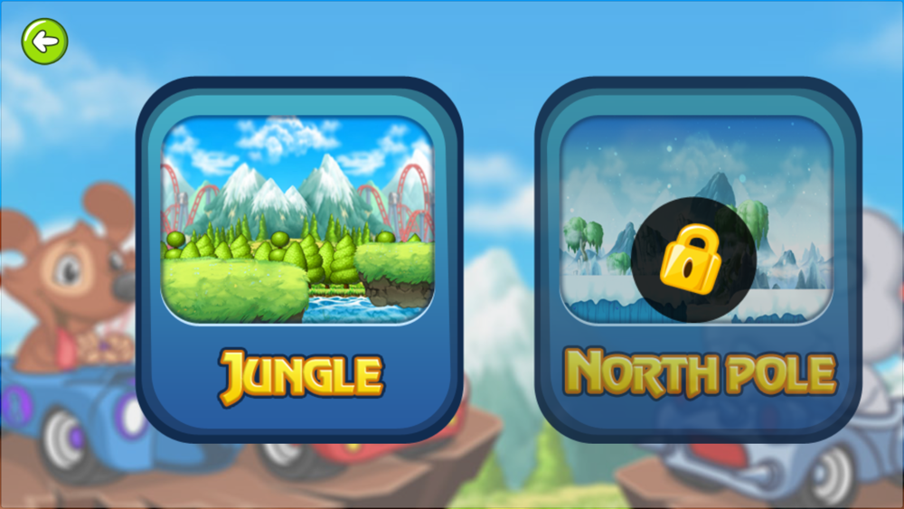 Location animal racing places like Jungle, Ice place, Desert, and volcano.