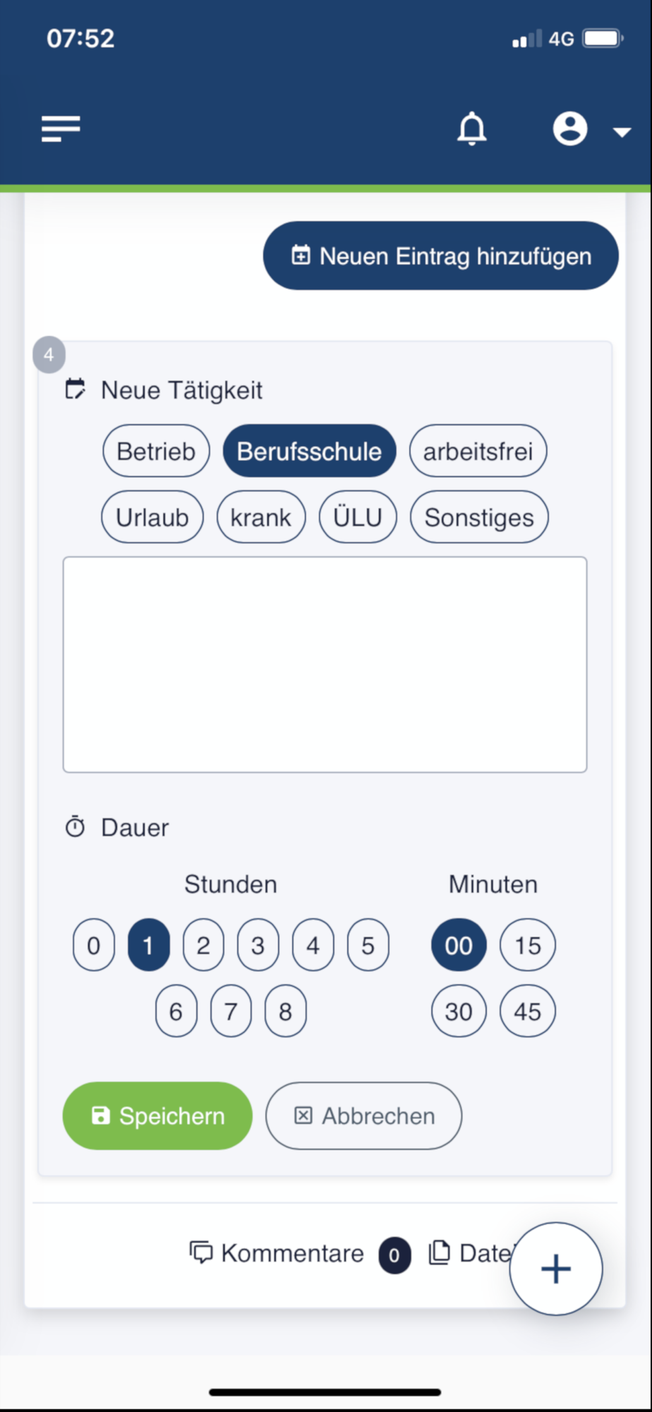 * Einfaches hochladen von Smartphone-Fotos oder anderer Dateien zum jeweiligen Berichtshefteintrag.
