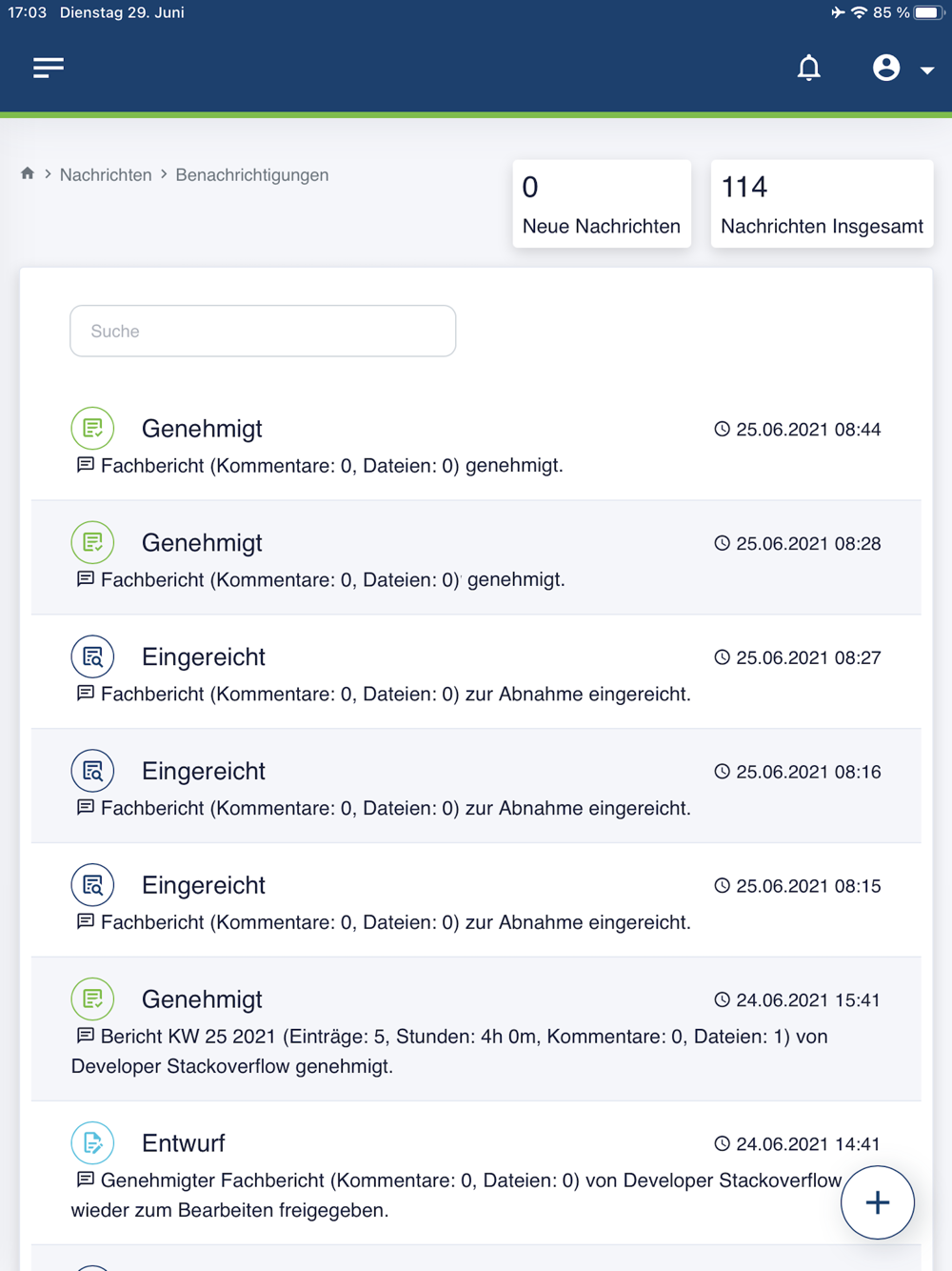* Pushnachrichten, z.B. wenn ein Bericht abgelehnt wurde.