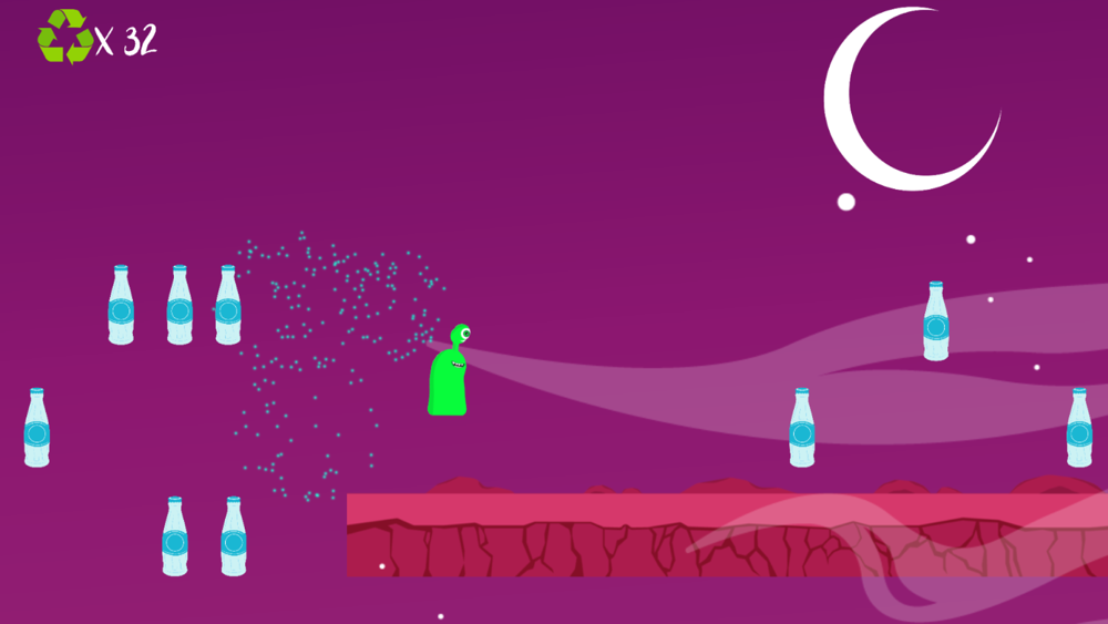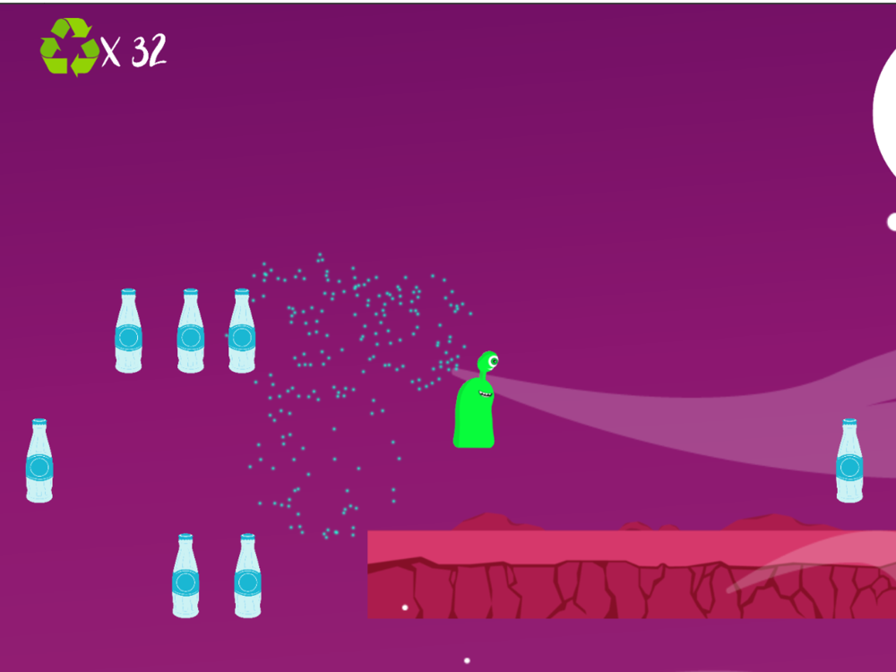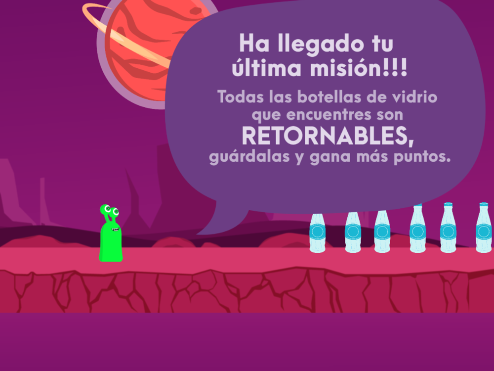 Conoce la cultura de los habitantes de un planeta llamado Alku. Su cultura se basa en la recolección de desechos reciclables. Recolecta botellas, basura o vidrio mientras evitas caer o golpear un obstáculo.
