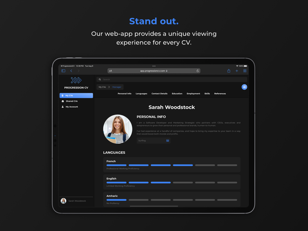 Progression CV is designed to make the CV creation process simpler and faster. With the Progression CV app, you can create, edit and share your CV wherever you are.
