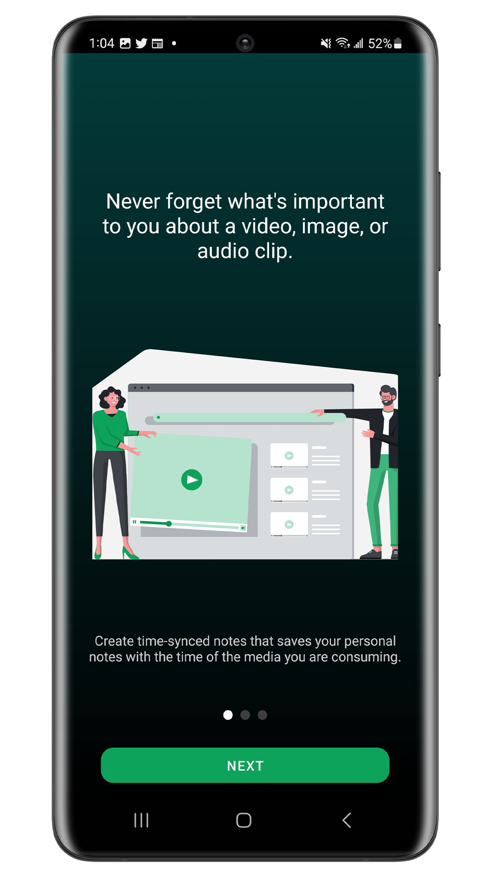 • Create time-synced notes for any form of media on your device and popular streaming services (ex. YouTube)