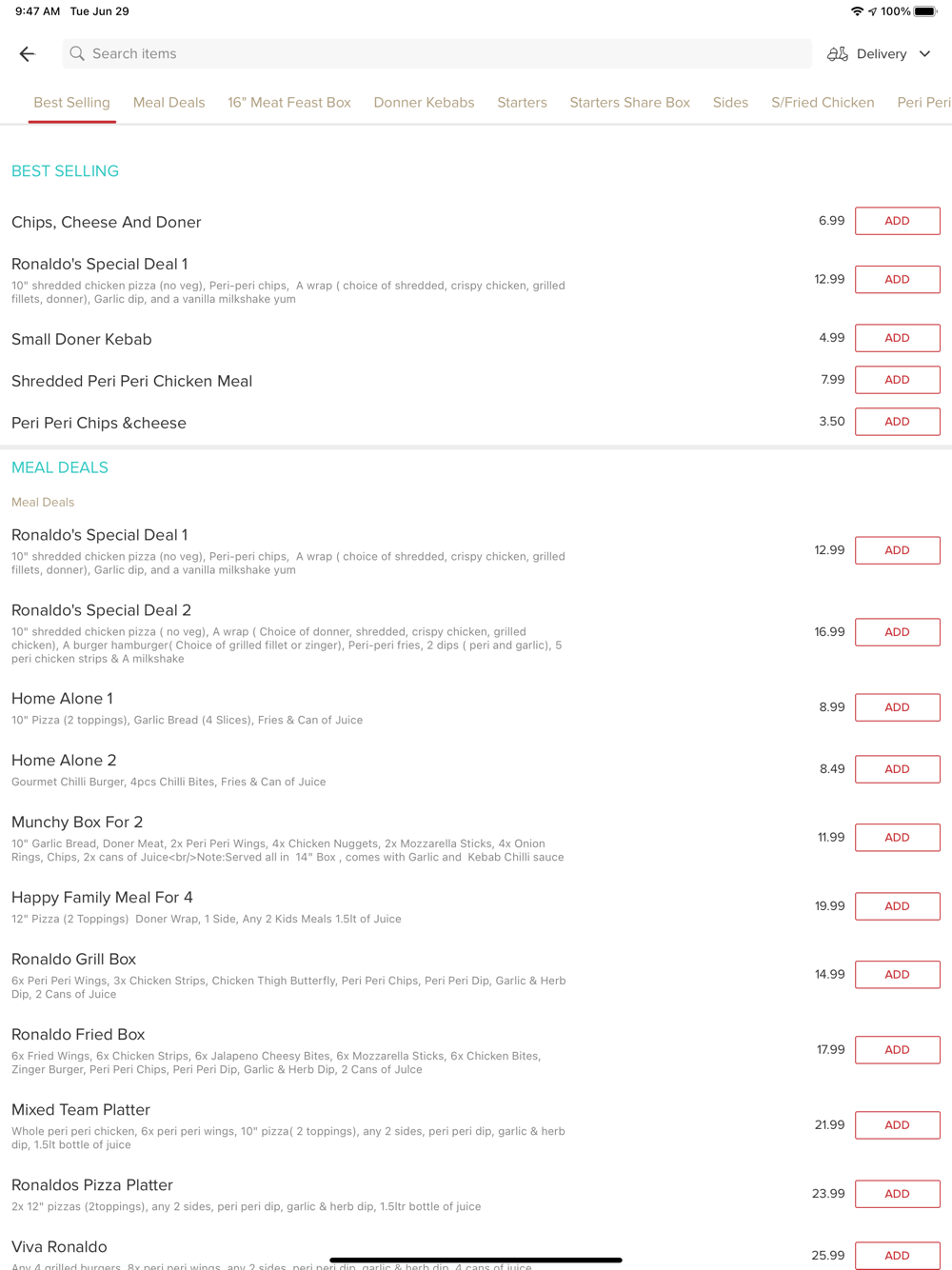 Order food online from Ronaldo's peri peri CHICKEN! It's so easy to use fast and convenient. Try our new online app which contains our entire takeaway menu. We’re passionate about providing delicious and high-quality food, our priority is to satisfy all of our customer's needs - we offer a variety of excellent food, prepared with the freshest and finest ingredients, to the highest standard.