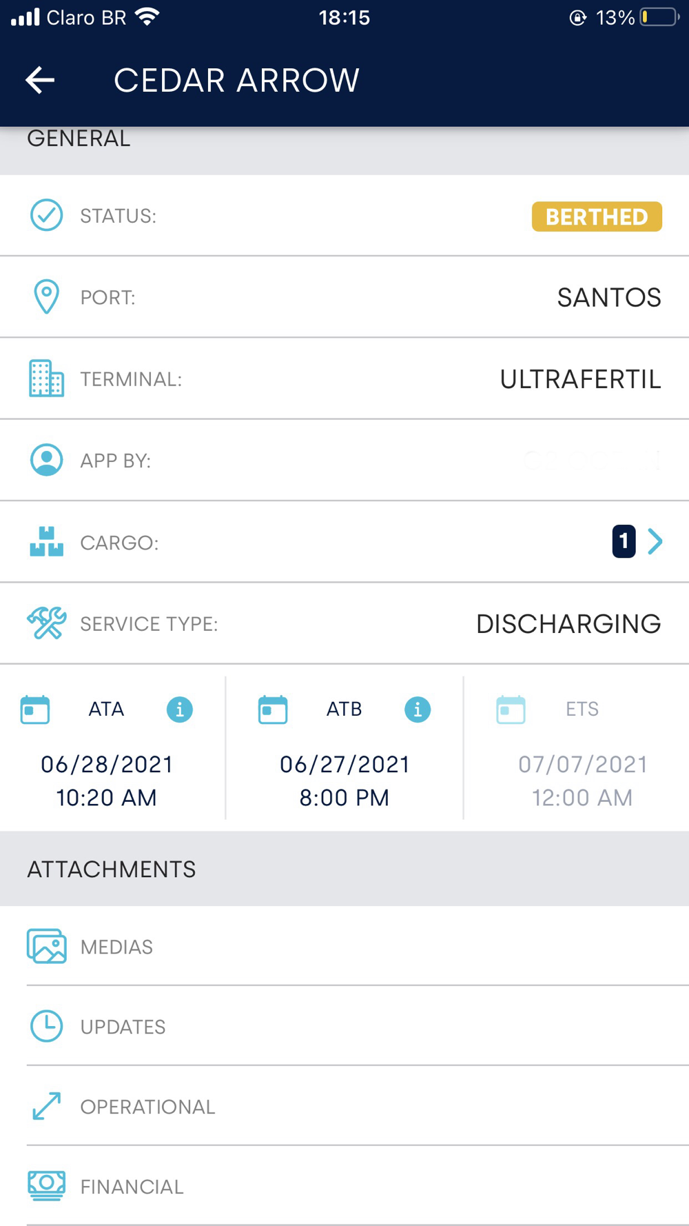 You will be able to access all the information of the vessels attended by Wilson Sons Shipping Agency, such as status, operational dates updated in real time, conditions, operational documents, photos and videos of the operation.