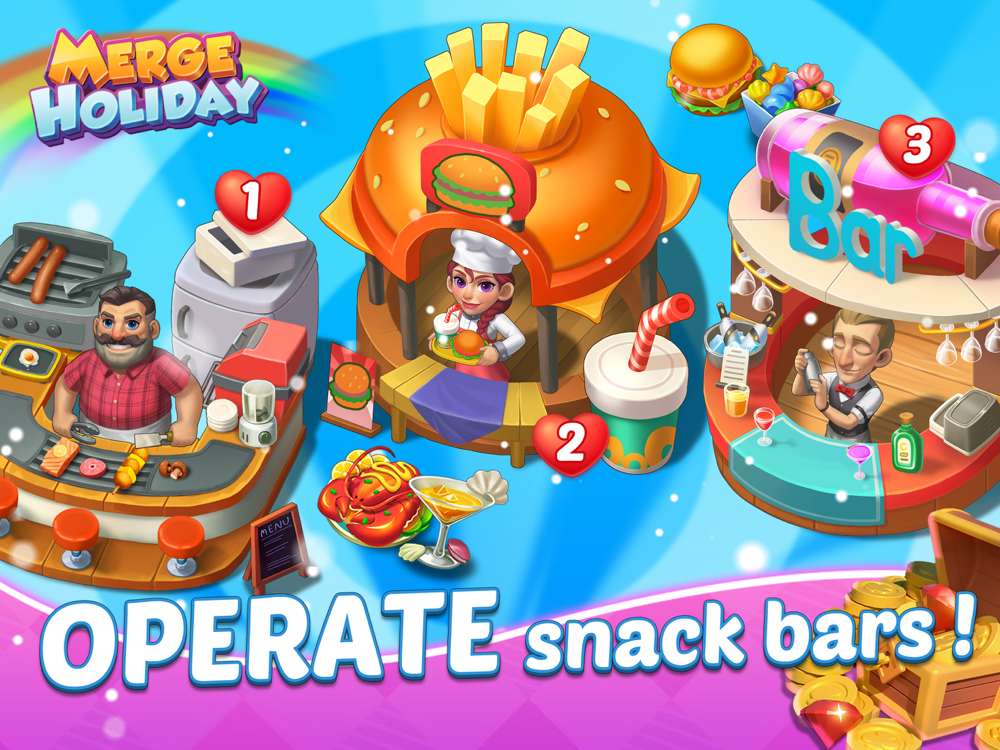 Just merge and build, you can create the most beautiful island, in Merge holiday!