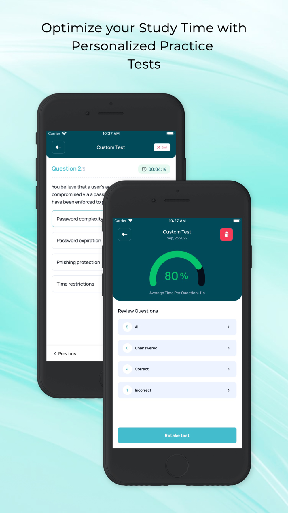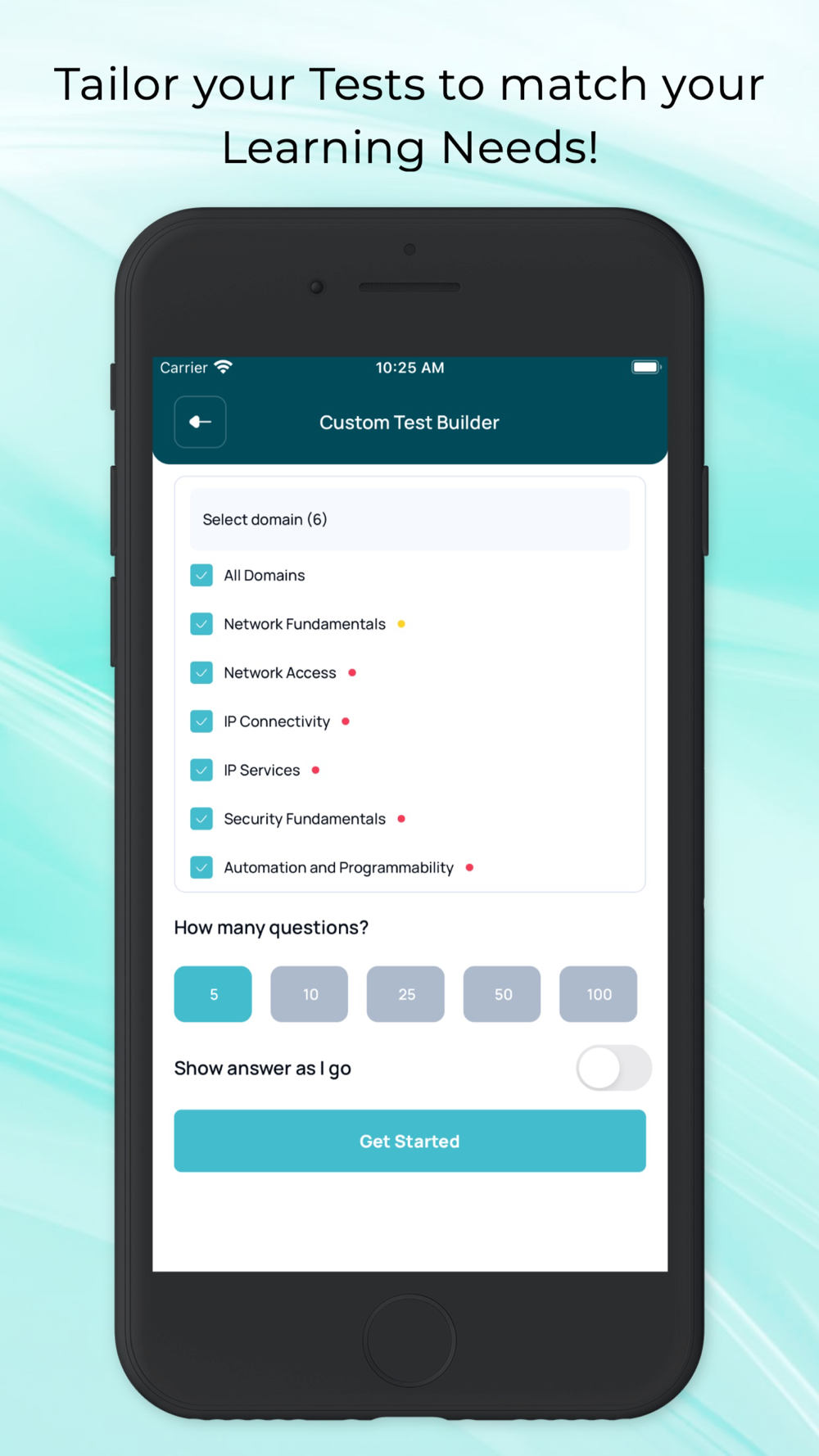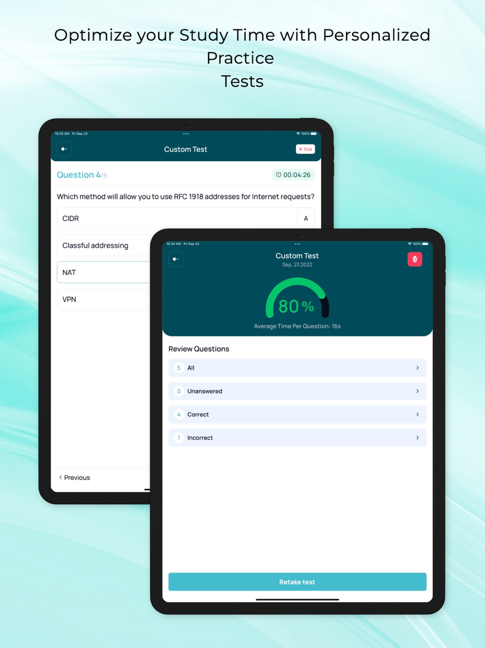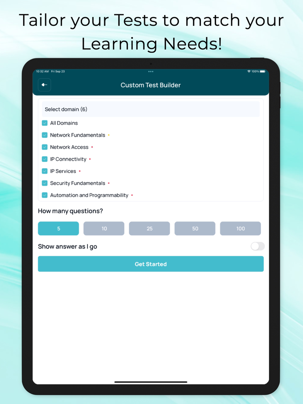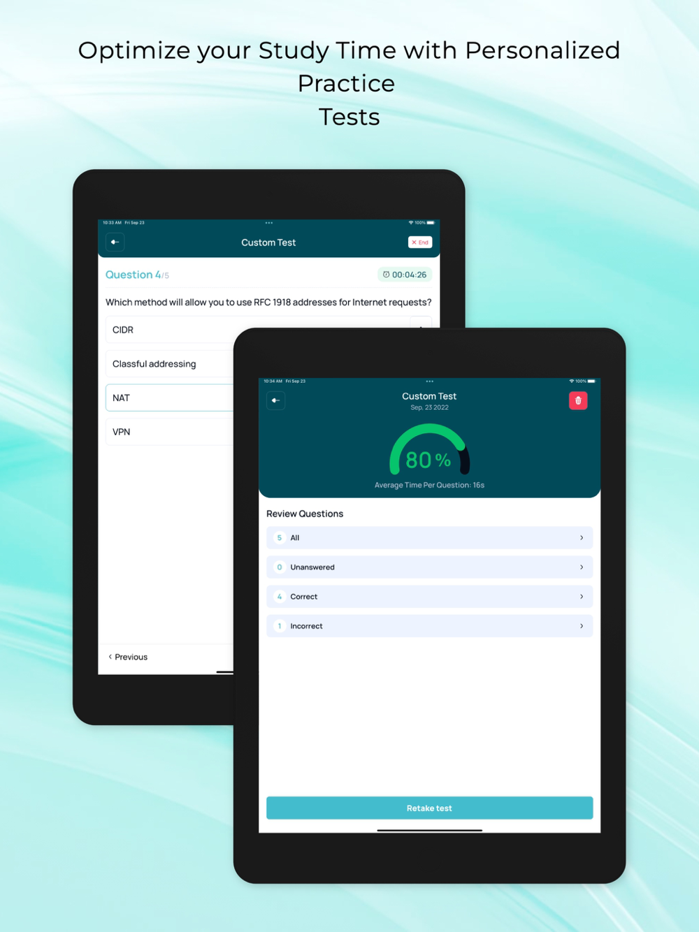 Custom Test Builder: Choose the topics you want to focus on, select the number of questions you want to include, set the time for the test, and prioritize questions based on your strengths and weaknesses.
